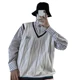 Pull gilet hommes col en v Patchwork loisirs ample tout-match Streetwear sans manches chandails hommes Chic Style coréen adolescents Couples BF