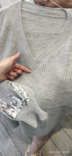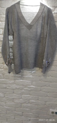 Pull Mohair en tricot fin pour femme, col en v, manches longues, paillettes, hauts, nouveau, 2022, PZ2592