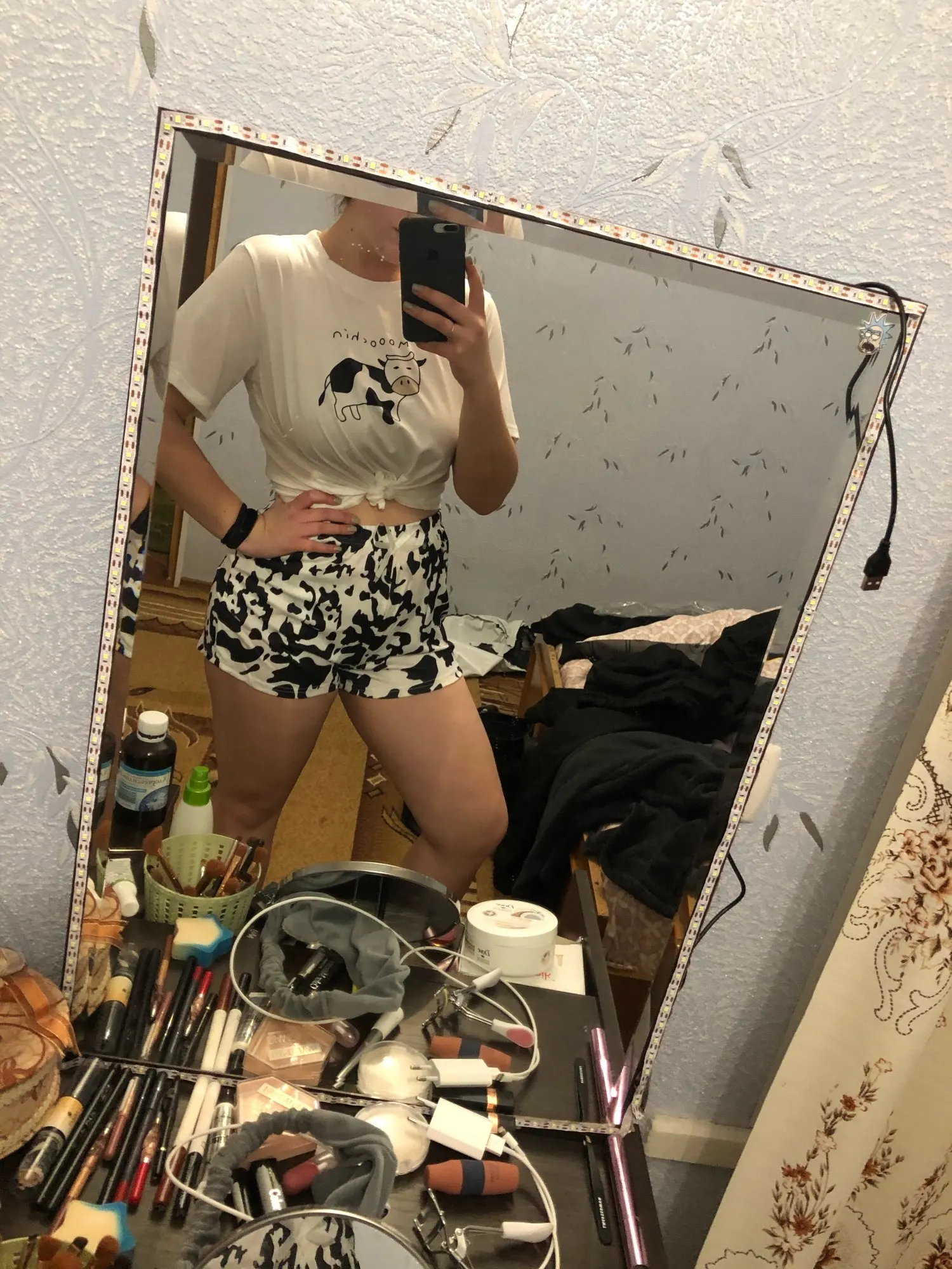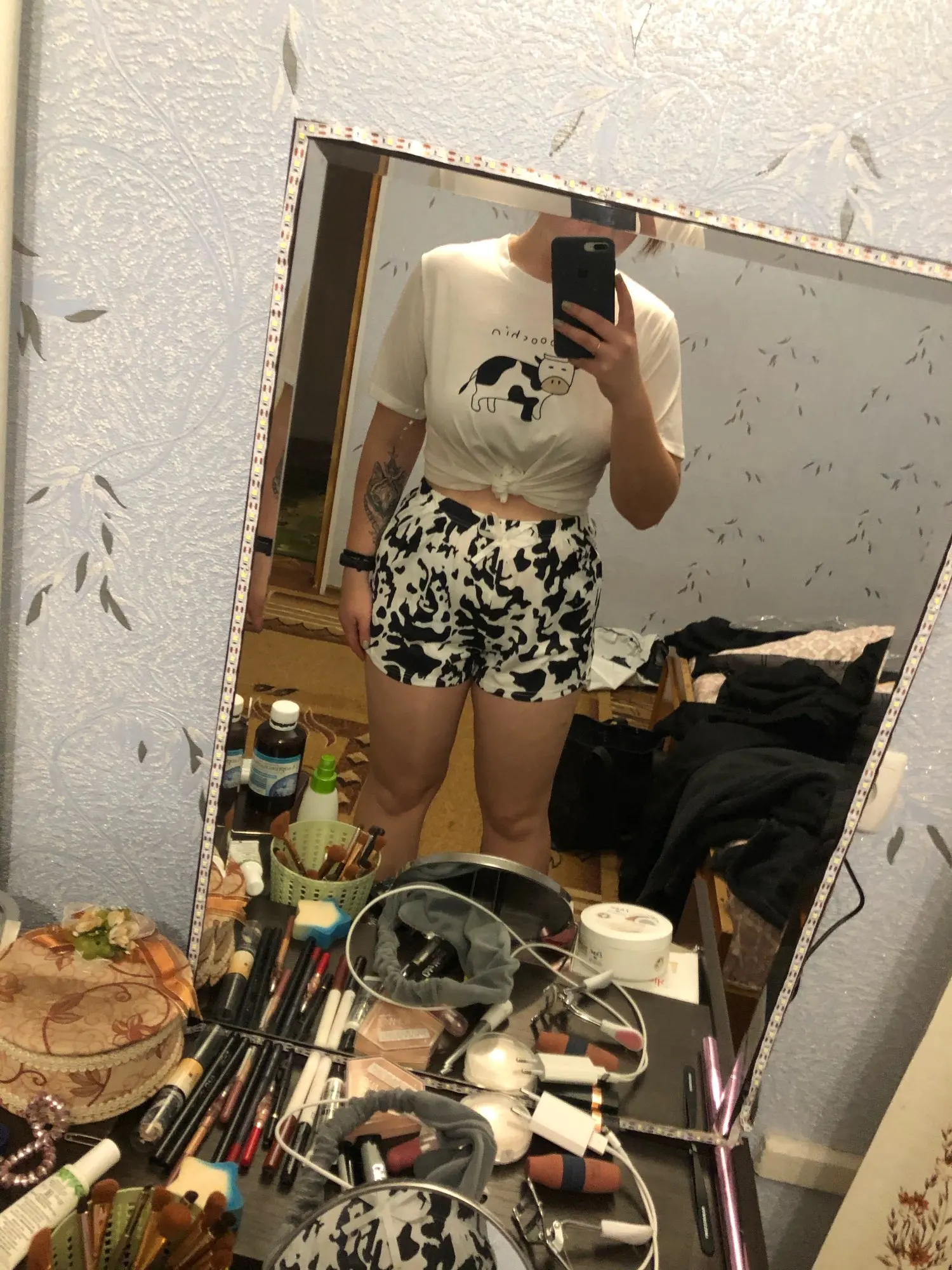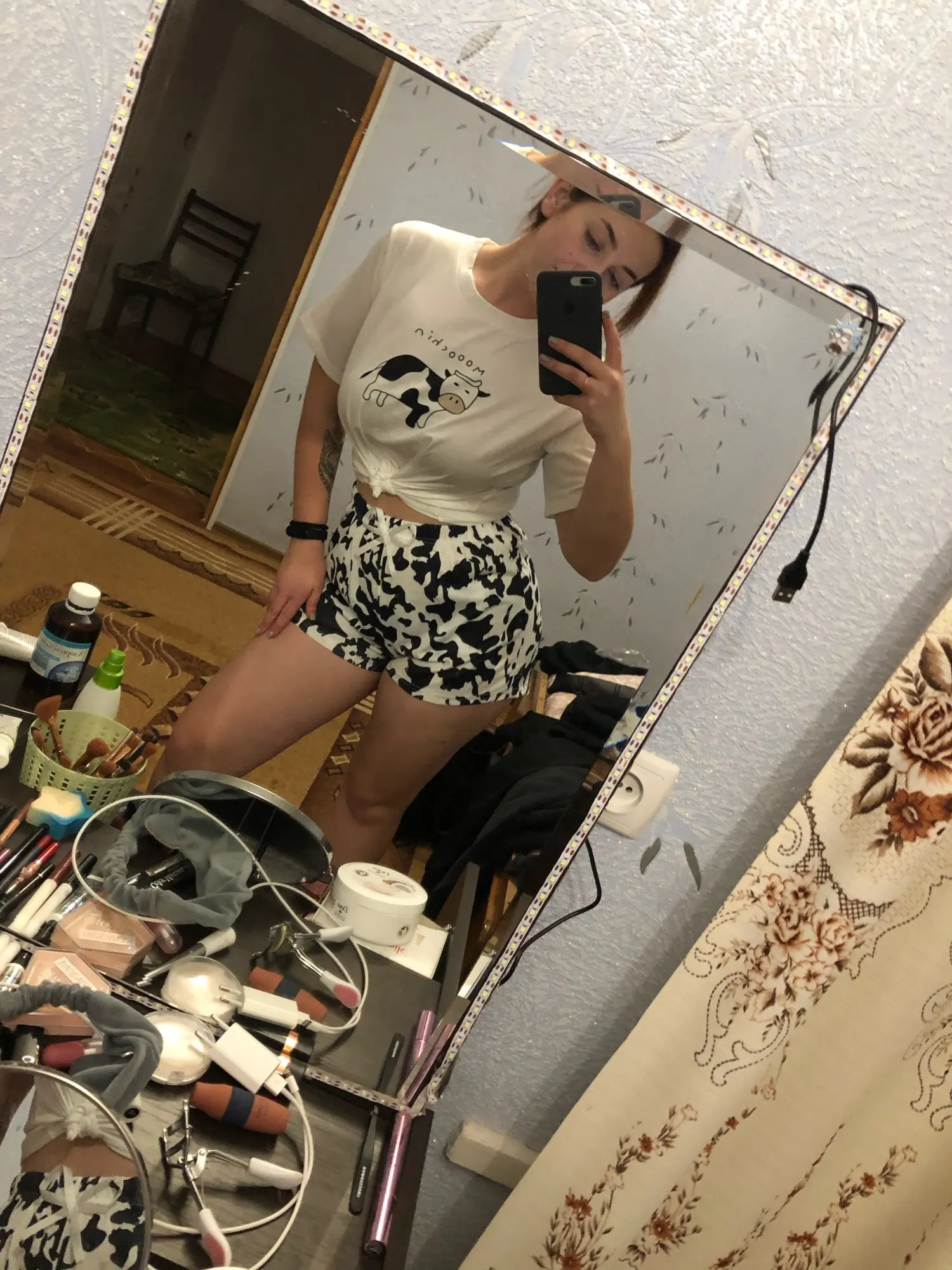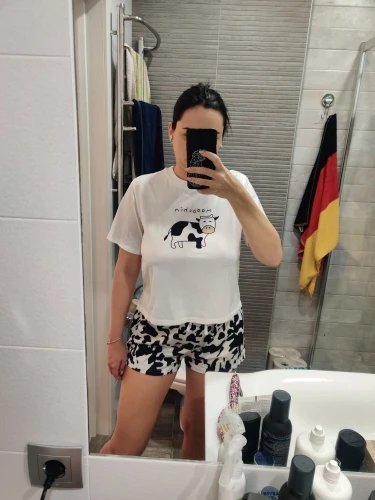 Pyjamas mignons pour femmes vache imprimer 2022 Pyjamas femmes à manches courtes vêtements de nuit dessin animé imprimé Pijamas femmes été maison vêtements
