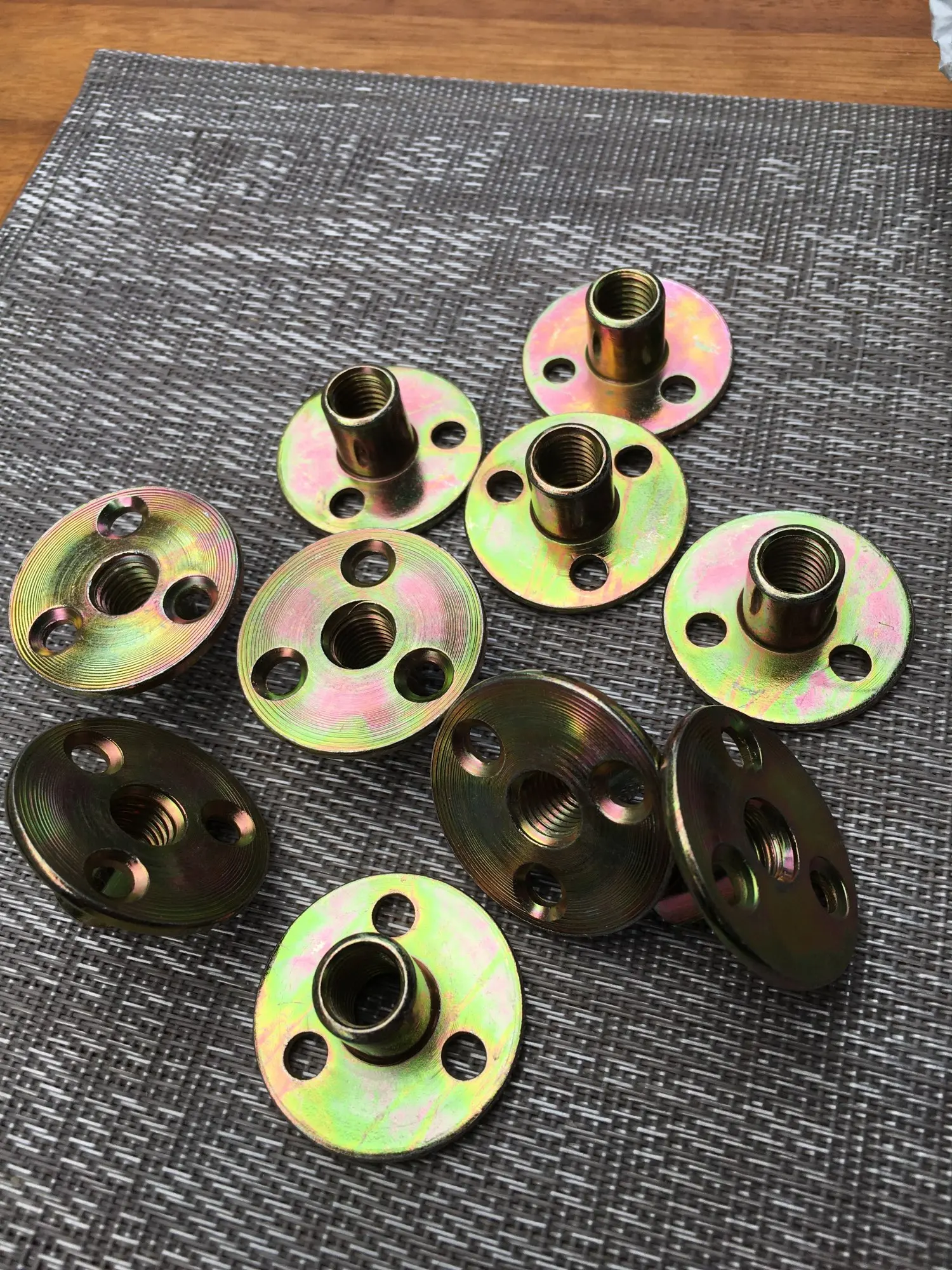 Raccord avec bride en acier au carbone avec filetage M6 M8 M10 M12 placage du Zinc trois trous, écrous de verrouillage de connecteur de meuble 10 pièces