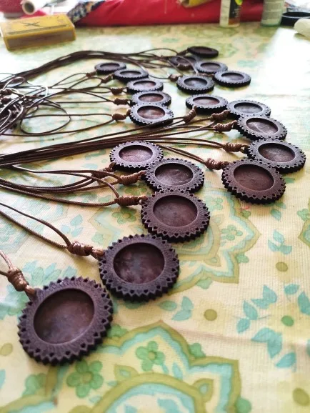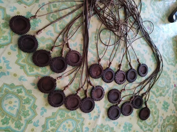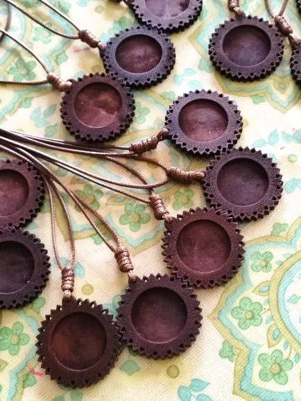 Réglages Cabochon en bois, taille intérieure 25/30mm, plateaux de Base vierges pour pendentifs, caméo, avec cordon en cuir pour la fabrication de colliers, 1 pièce