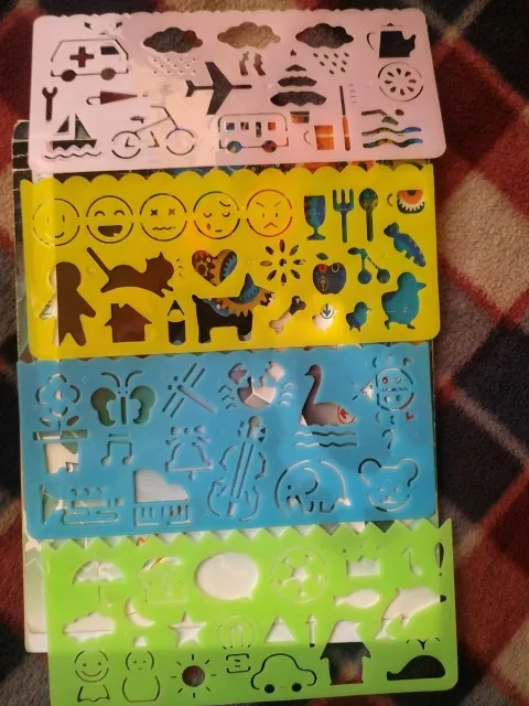 Règle de dessin, symboles graphiques mignons, modèle de papeterie, dessin, pochoir jouets pour enfants étudiants, cadeaux pour enfants, 4 pièces