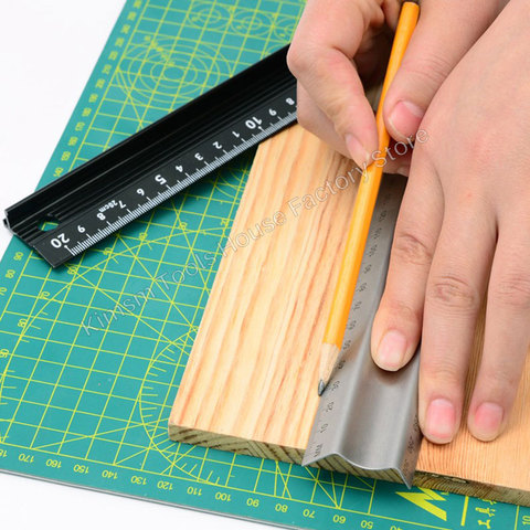 Règle de protection en forme de M en acier inoxydable 20-45cm règle d'art en forme de L en alliage d'aluminium Anti-coupure empêche le saignement d'encre règle antidérapante