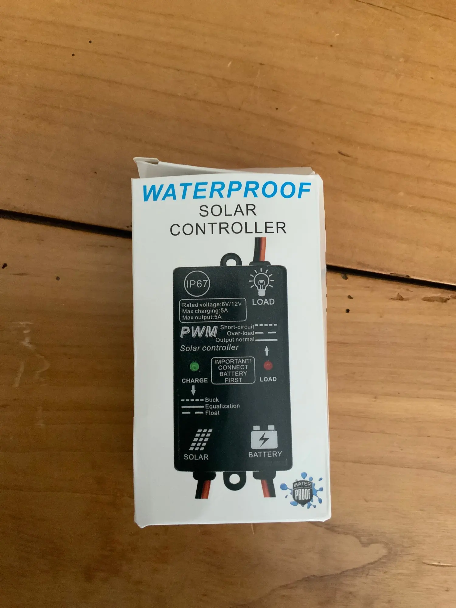 Régulateur de panneaux solaires 5a, étanche IP67, 6V 12V, Charge automatique 24h, régulateur de Charge et décharge pour batterie acide-plomb