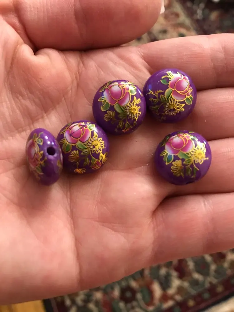 Résine pour peinture japonaise, style Vintage japonais, 5 perles d'espacement, motif de fleurs violettes et roses, environ 16mm de diamètre