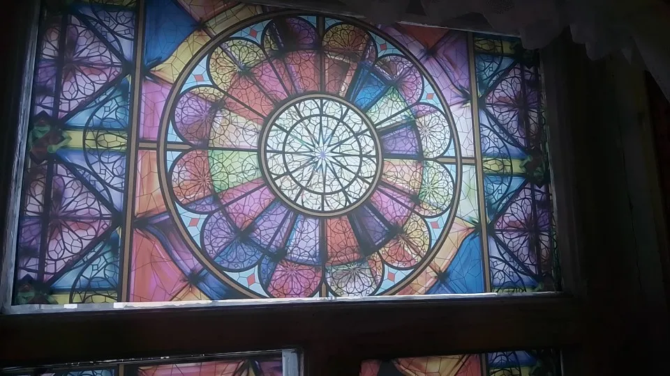 Rétro église européenne peint électrostatique givré vitrail Film PVC auto-adhésif église maison feuille autocollants