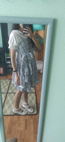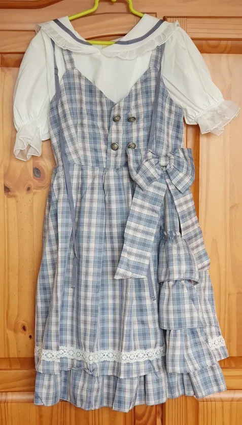 Robe à carreaux en dentelle pour femmes, Style Lolita japonais, à bretelles, à volants, sans manches, avec nœud, mignon Kawaii, robes JSK pour filles, nouvelle collection