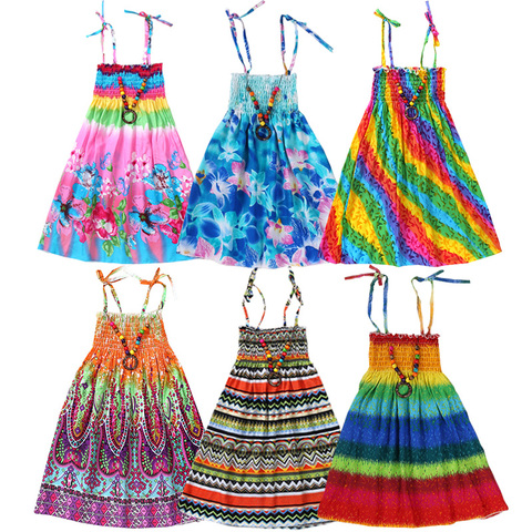 Robe d'été florale pour filles, robes de princesse pour filles, à volants style bohémien, vêtements de plage, pour filles de 2, 6, 8, 12 ans, avec collier cadeau