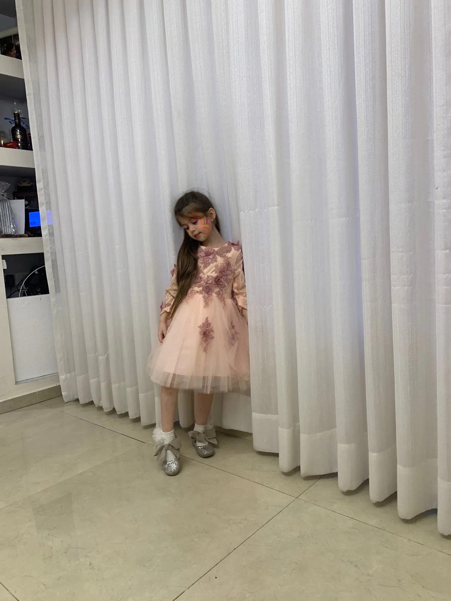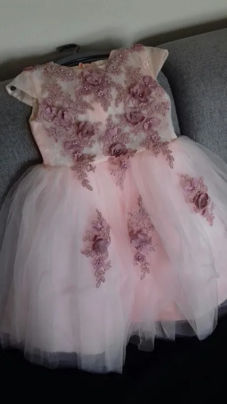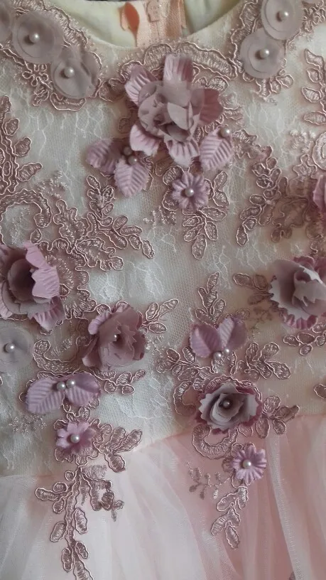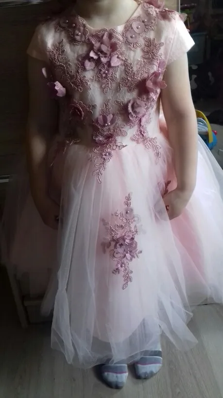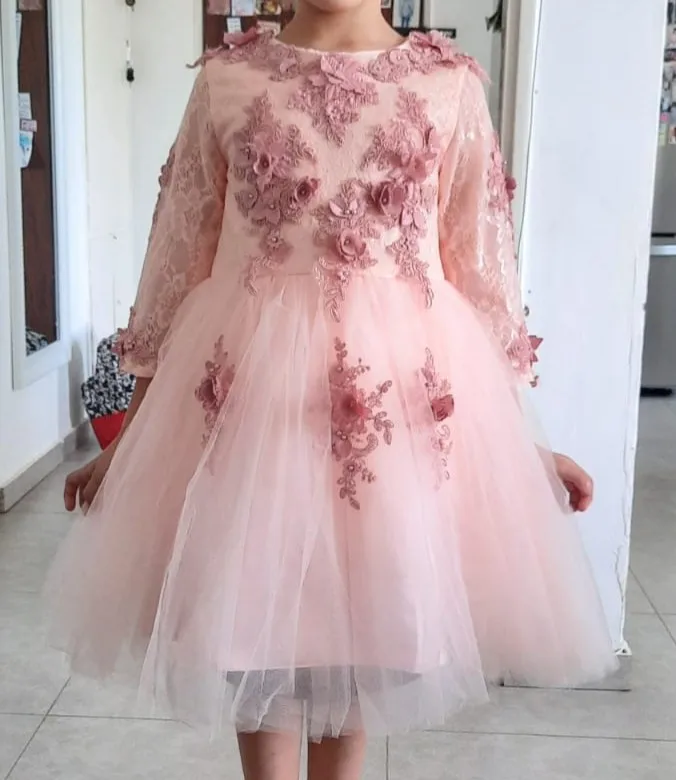 Robe de demoiselle d'honneur en Tulle rose élégante, pour mariage, longues manches, Appliques, robe de bal pour enfants, robe de princesse de première Communion