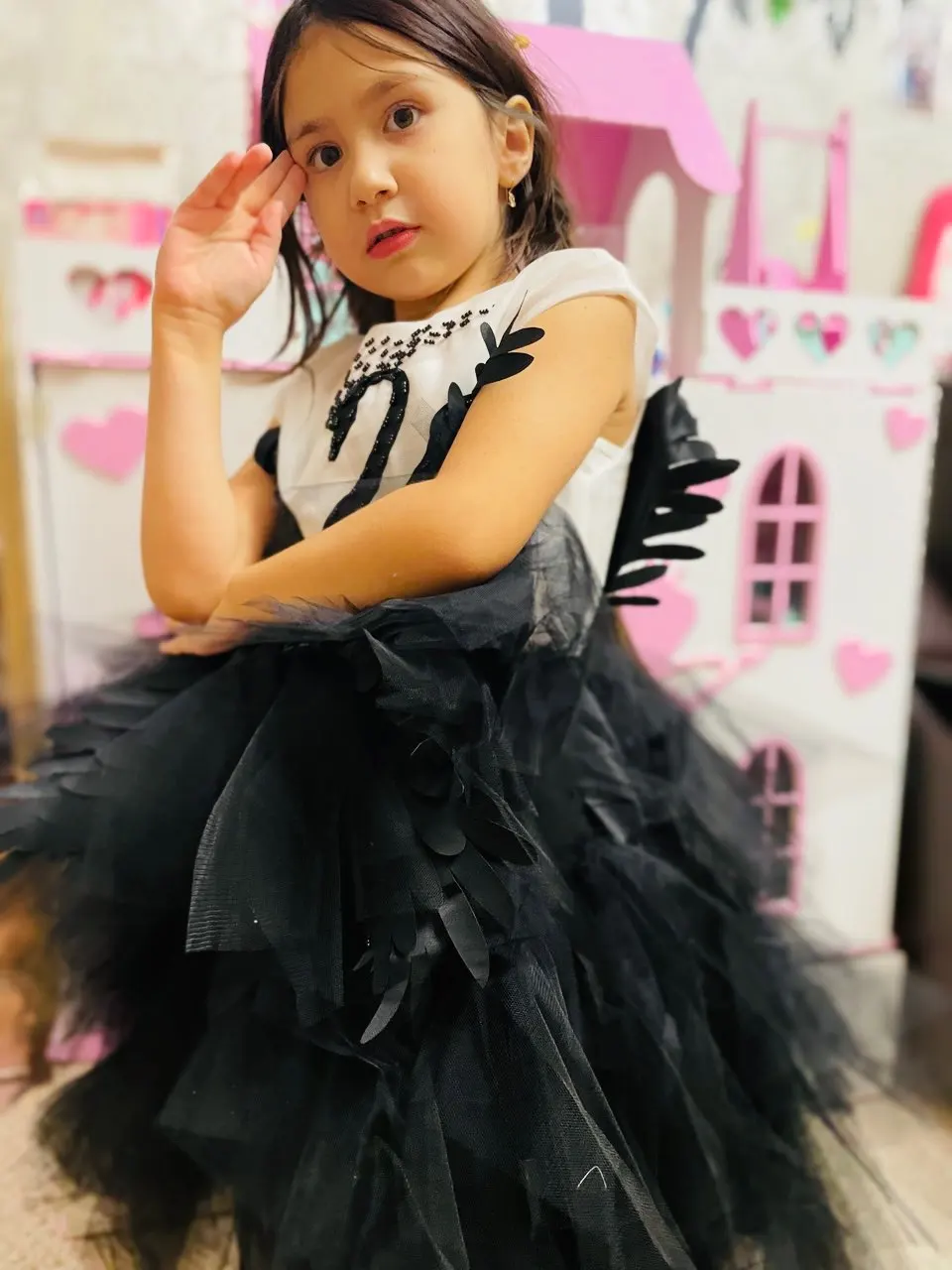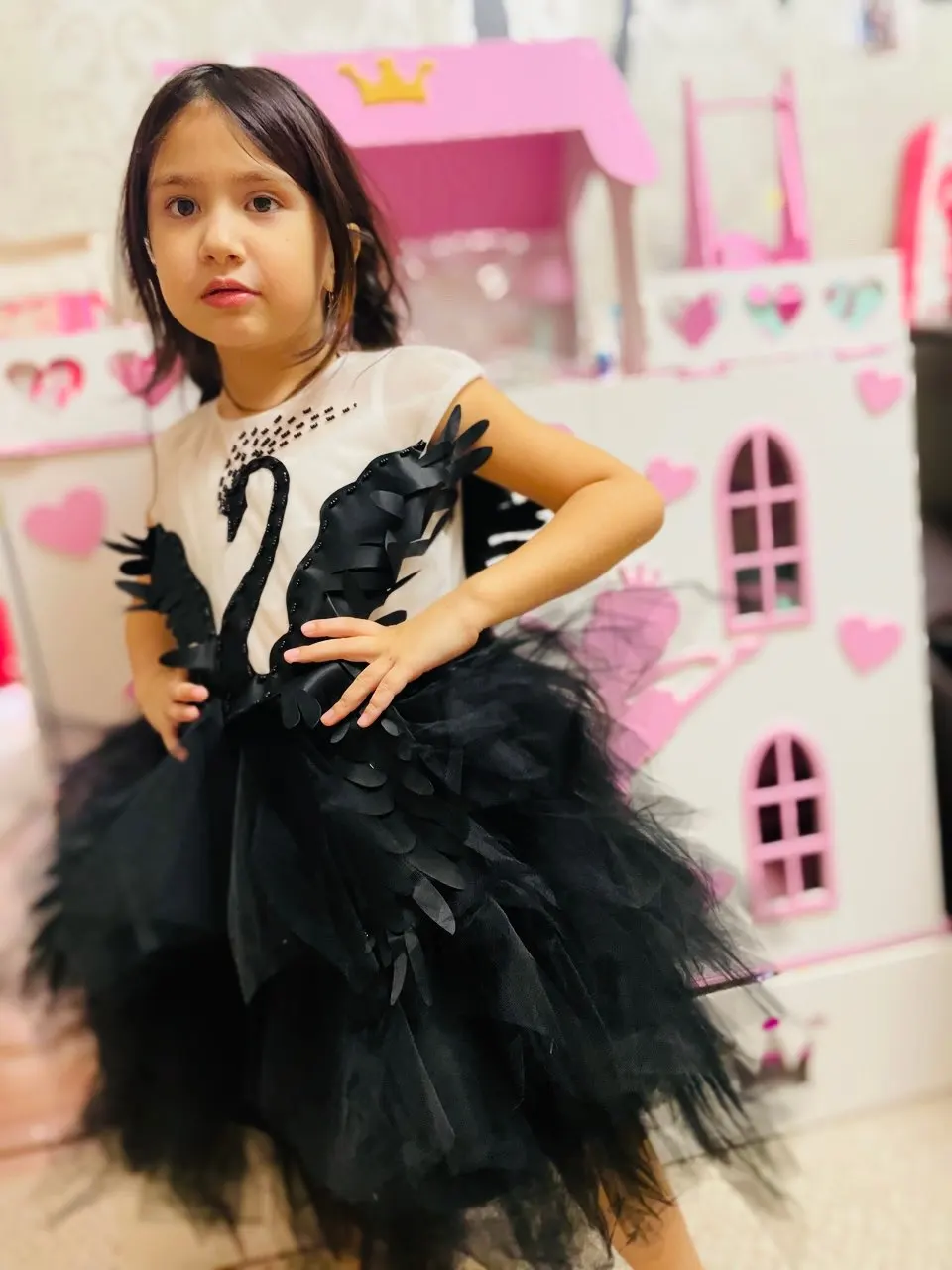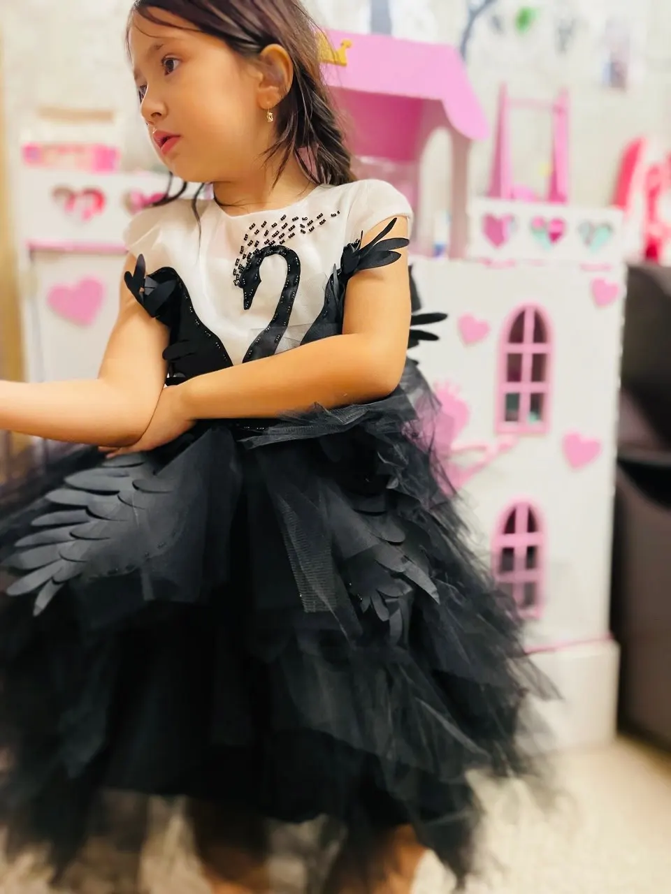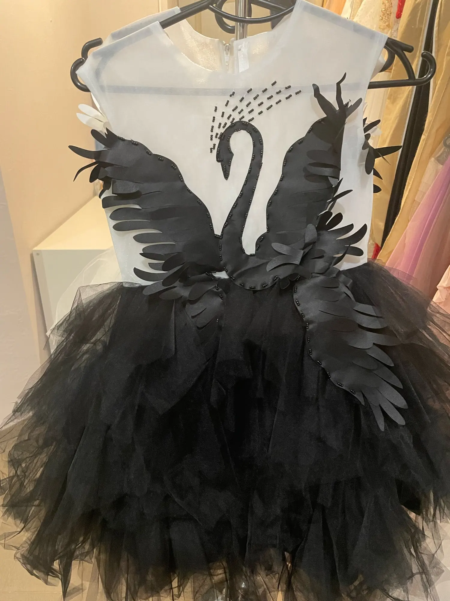 Robe de fille en Tulle fleur noire cygne cristal Tulle princesse Pageant vêtements de mariage enfants robe de fête d'anniversaire robe de bal de soirée