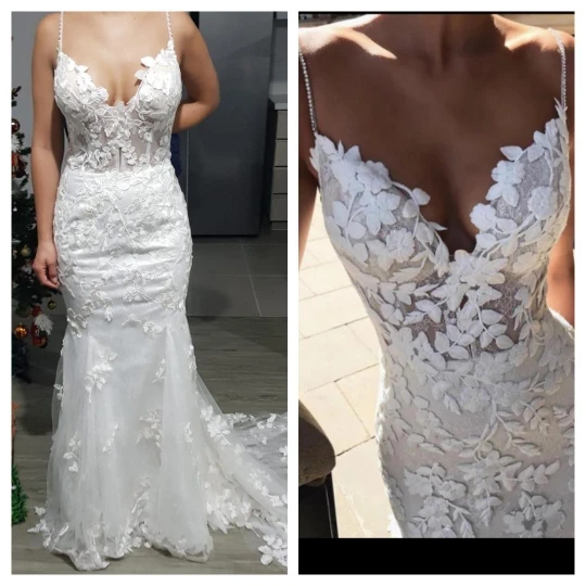 Robe De mariée sirène en dentelle, motif Floral 3D, dos nu, traîne en tulle, grande taille, style boho, 2022