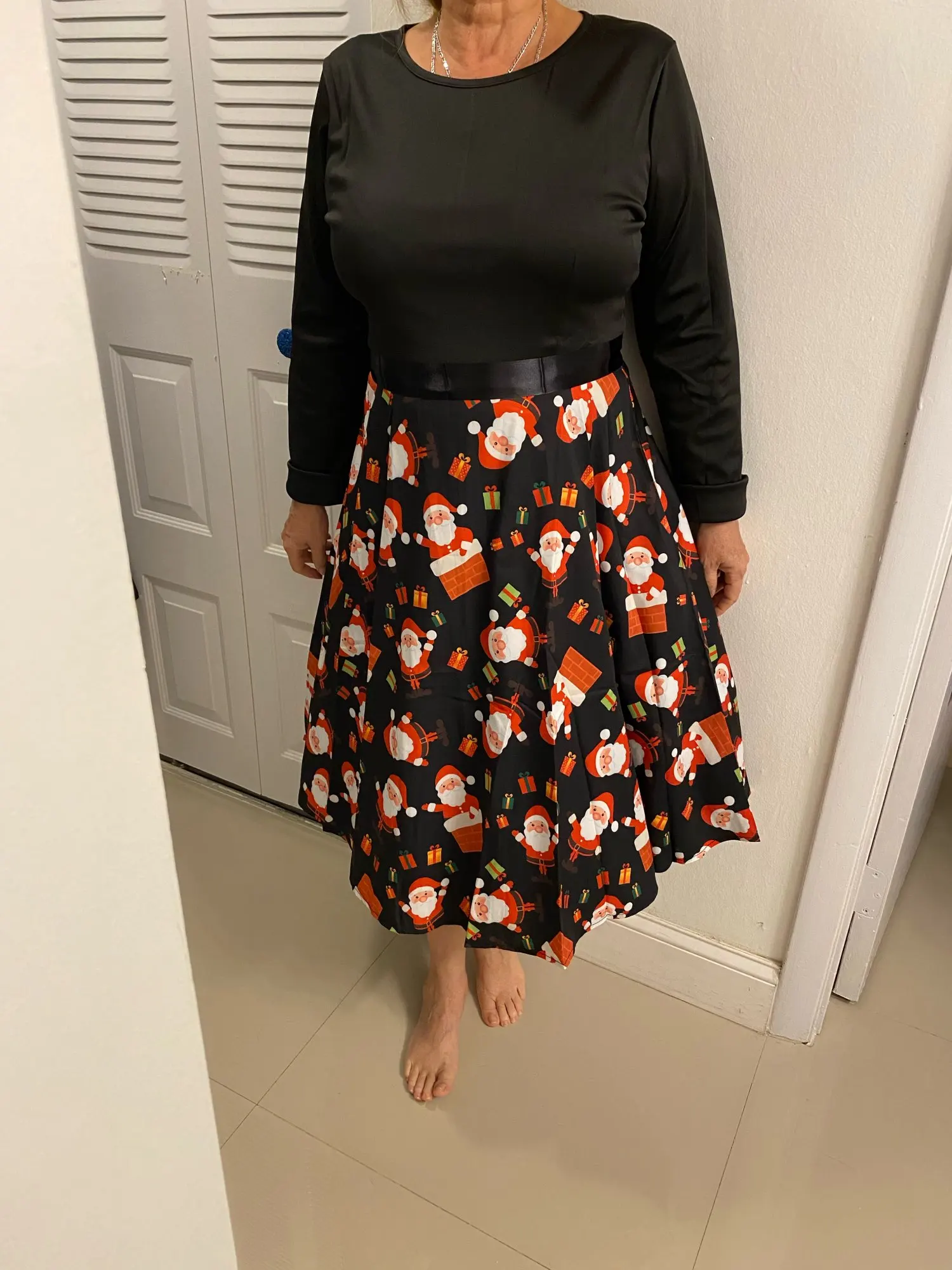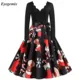 Robe de noël vintage pour femmes, tenue de soirée élégante, manches longues, décontractée, modèle swing, pin-up, grande taille, impression en noir, inspiration années 50, 60