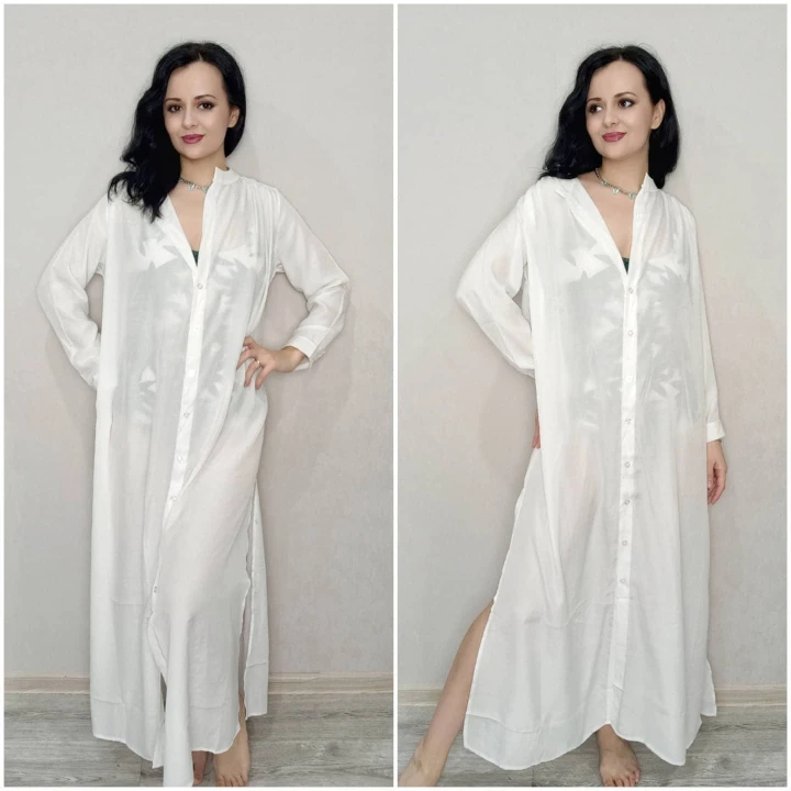 Robe de plage longue, tunique blanche, grande taille, Kaftan, Cover-up pour les costumes de bain, # Q737
