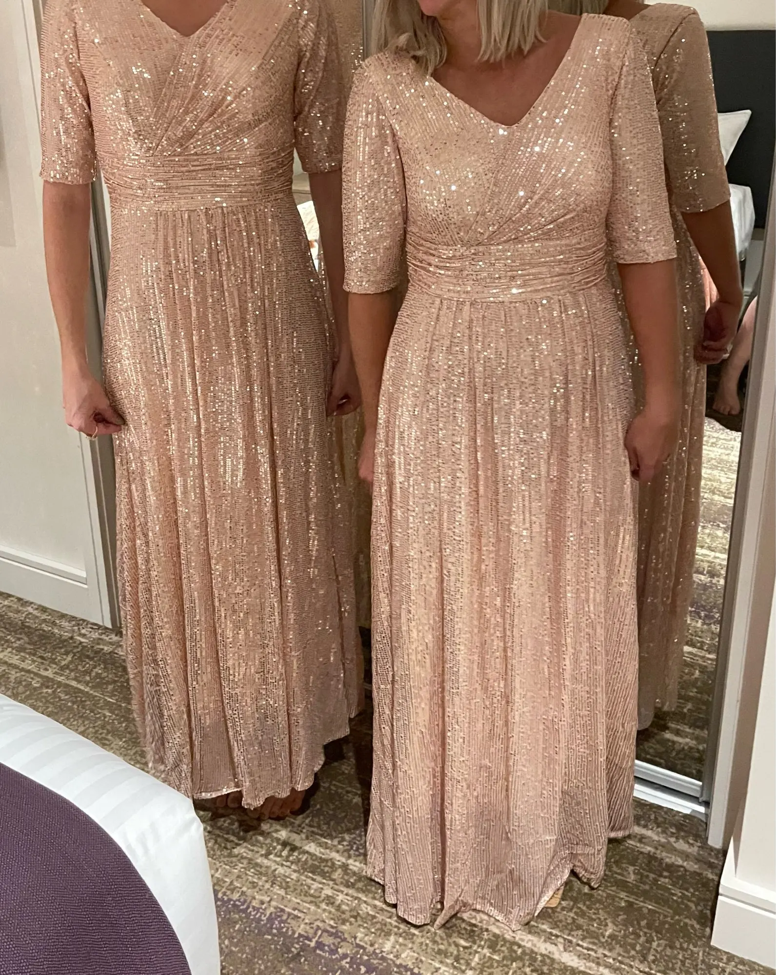Robe De soirée Double col en v demi-manches femmes robes De soirée K004 a-ligne élégante Robe De soirée 2022 Bling Sequin robes formelles