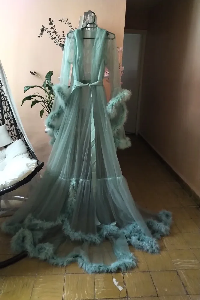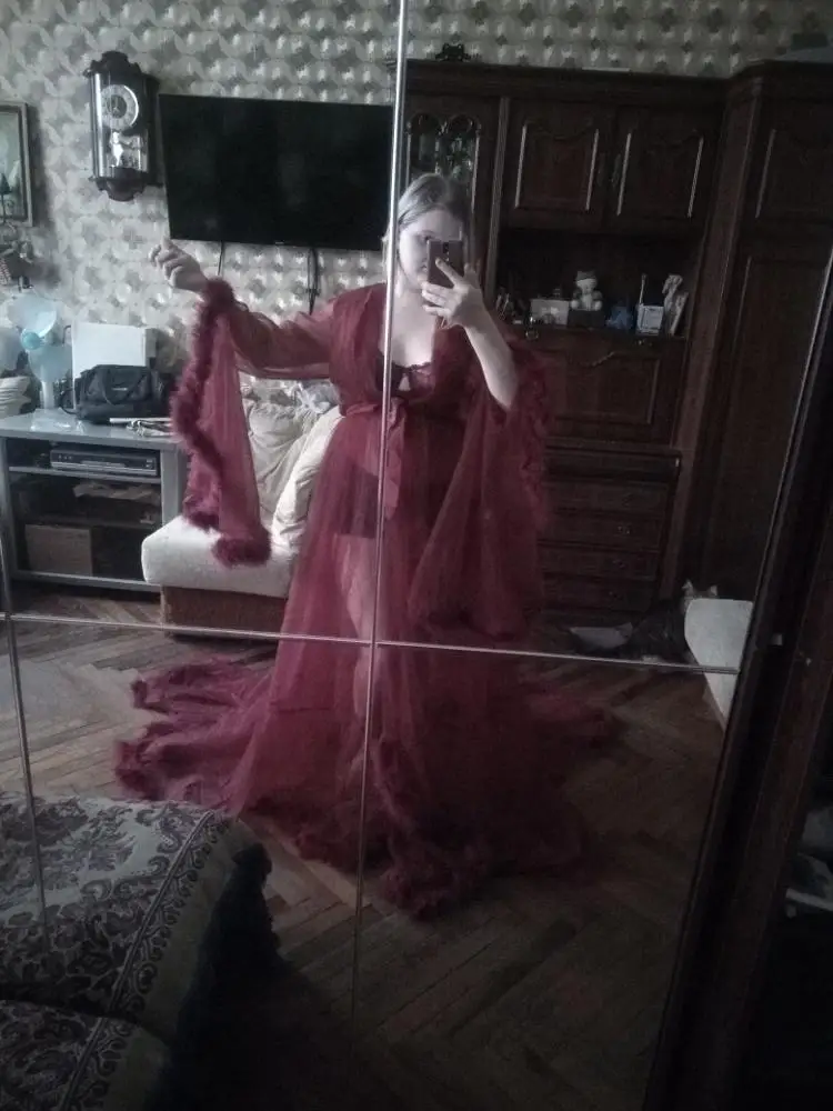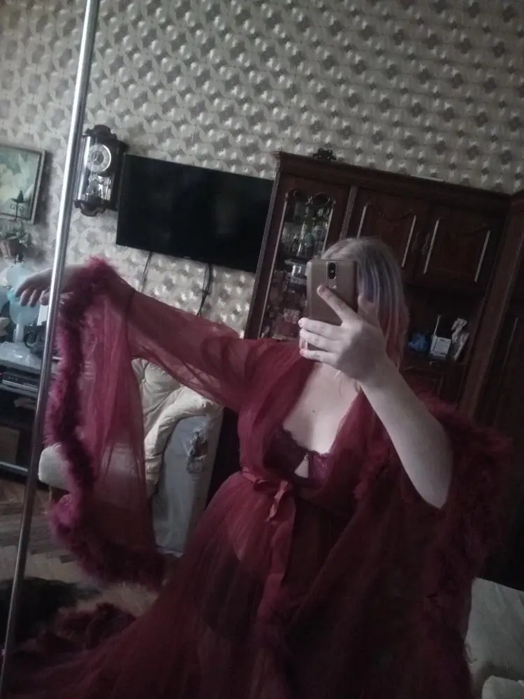 Robe de soirée en Tulle, manches longues, plumes, Sexy, rouge bordeaux, robe de bal élégante, grande taille, robes d'occasion pour femmes, modèle 2022