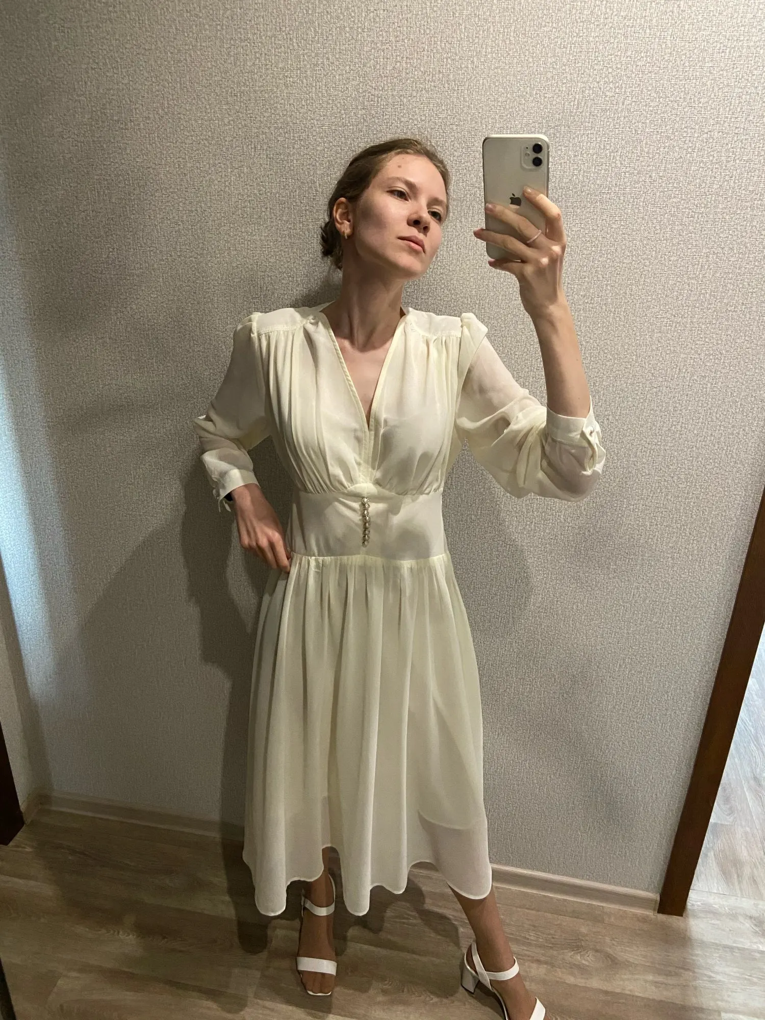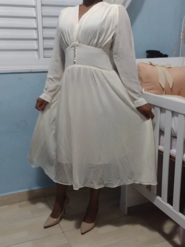 Dommage la taille ne correspond pas du tout, j'ai pris les bonnes mesures pourtant. La robe est trop "haute" c'est à dire que la ceinture est au niveau des seins (alors qu'elle devait être en dessous) A part ça, le tissu a l'air qualitatif et la robe est conforme aux photos