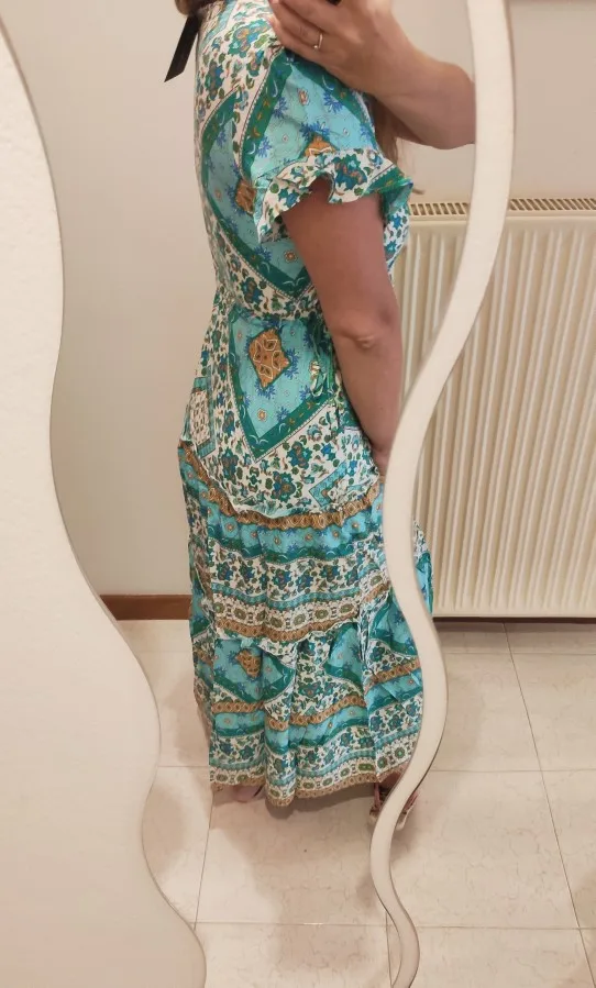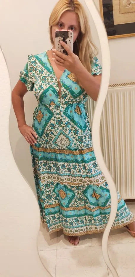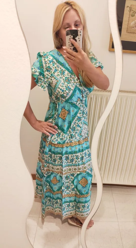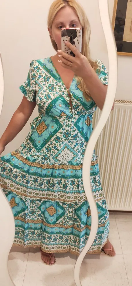 Robe longue à motifs floraux pour femmes, style Boho, col en v, taille élastique, ceinture, été 2022