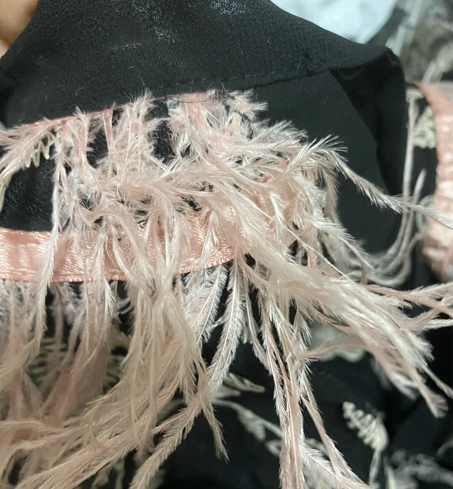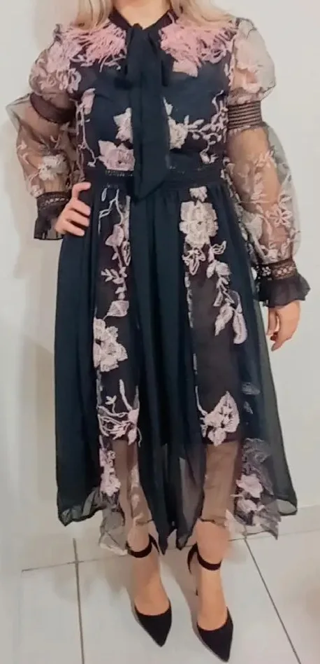 Robe longue d'été en plumes d'autruche pour femmes, tenue de soirée transparente à manches lanternes et nœuds brodés, grande taille, A509