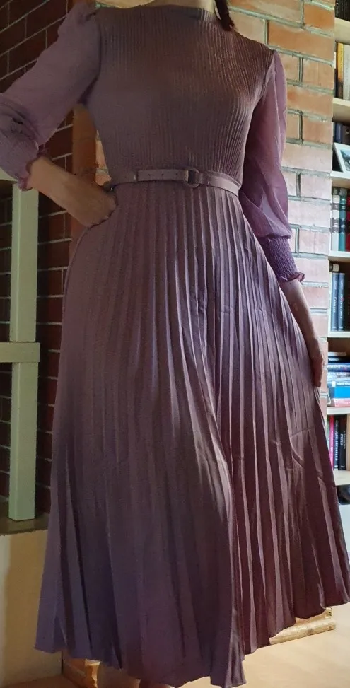 Robe longue plissée à col rond et manches longues pour femme, tenue élégante de style Streetwear, coupe trapèze, collection automne