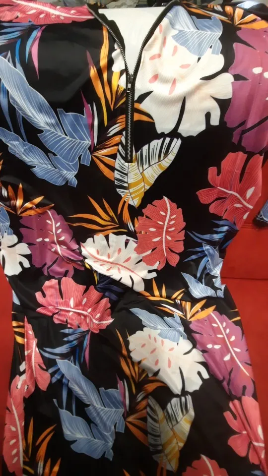 Robe moulante en coton et Spandex pour femmes, tenue imprimée avec lacets, taille haute, demi-manches, fermeture éclair, col en v, Sexy, grande taille, automne
