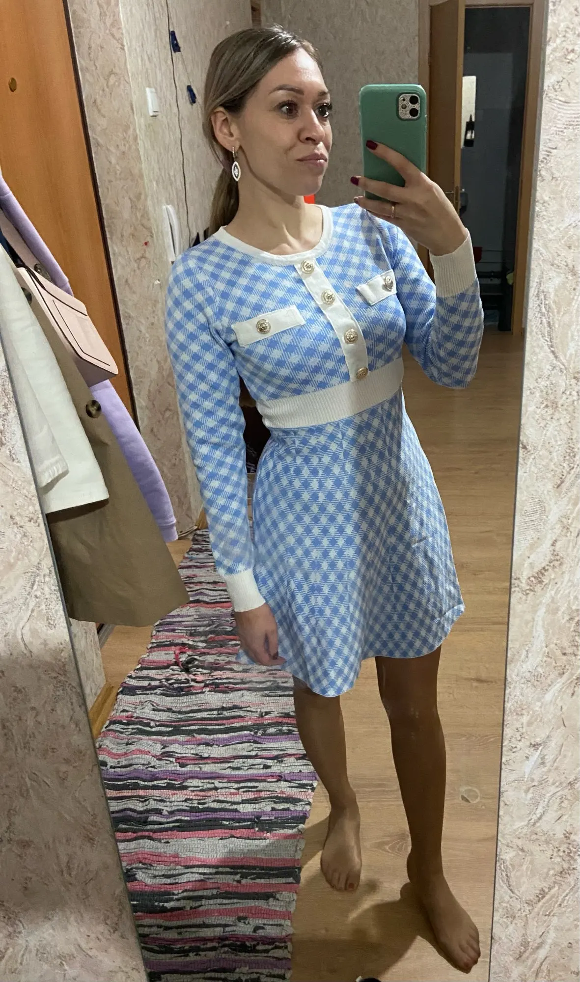 Robe pull tricotée à boutons pour femmes, mode coréenne, Vintage, Plaid, bleu, noir, Mini, printemps, 2022
