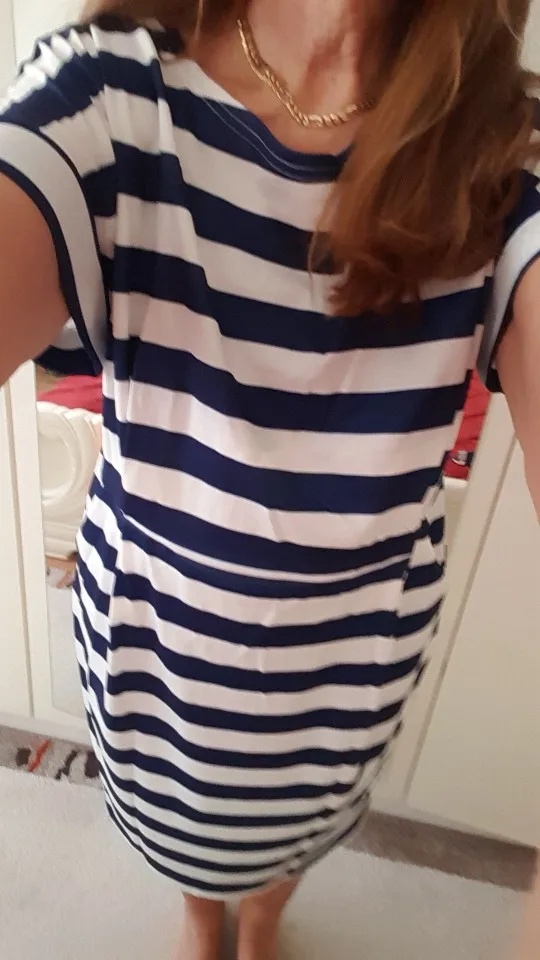 Robe rayée à manches courtes, en coton, col rond, grande taille, Slim, moulante, poches solides, nouveauté, été décontracté
