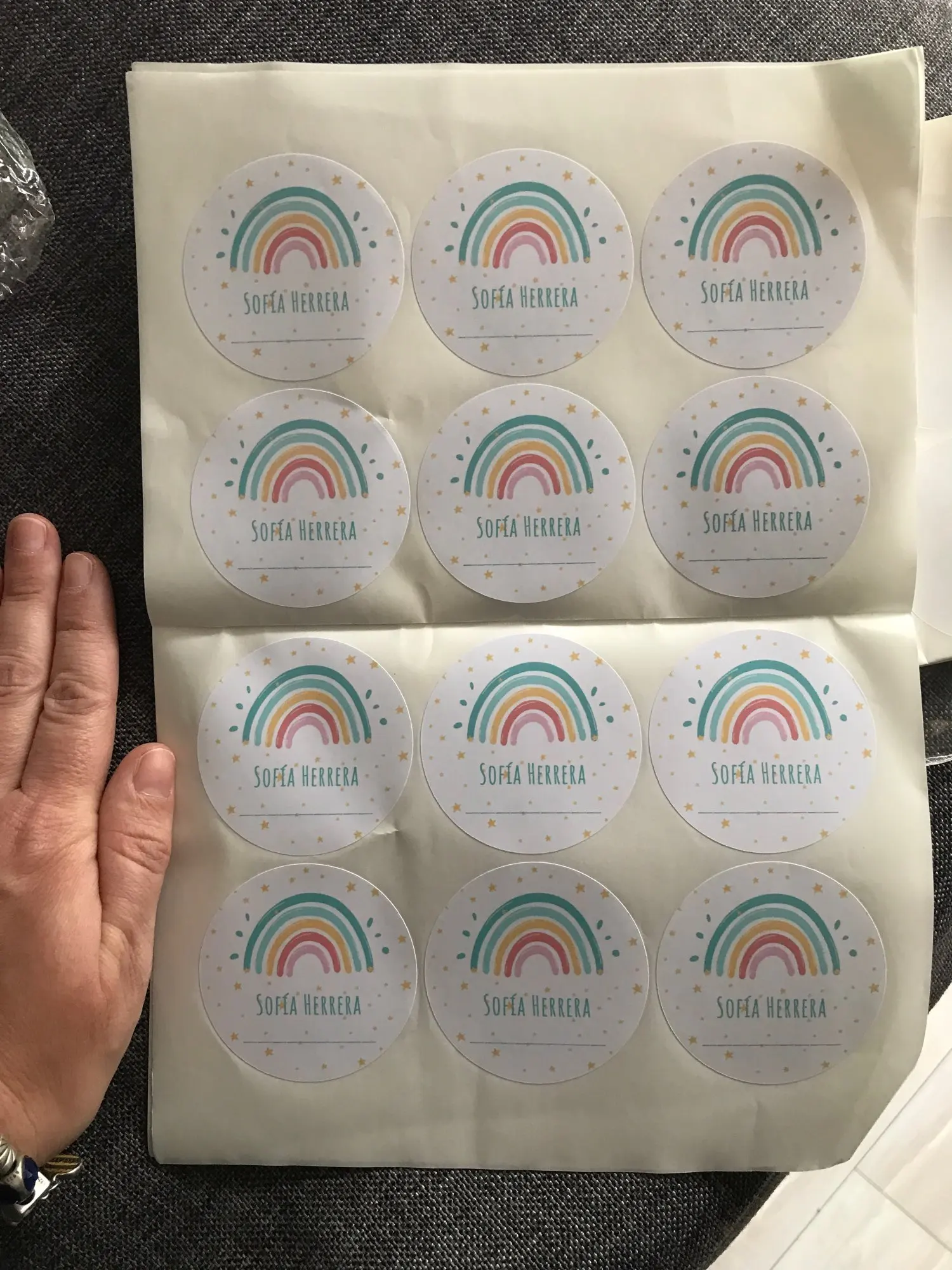 Rond dessin animé personnalisé autocollants mignon arc-en-ciel autocollant pour anniversaire bébé douche à la main cadeau décor étiquettes enfants récompense autocollants