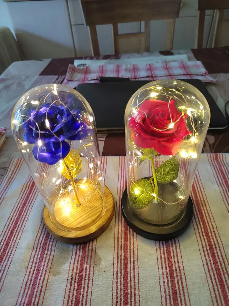 Rose éternelle pour toujours beauté et bête Rose en flacon Led Rose fleur lumière verre dôme décoration de la maison mère mariage Valentine