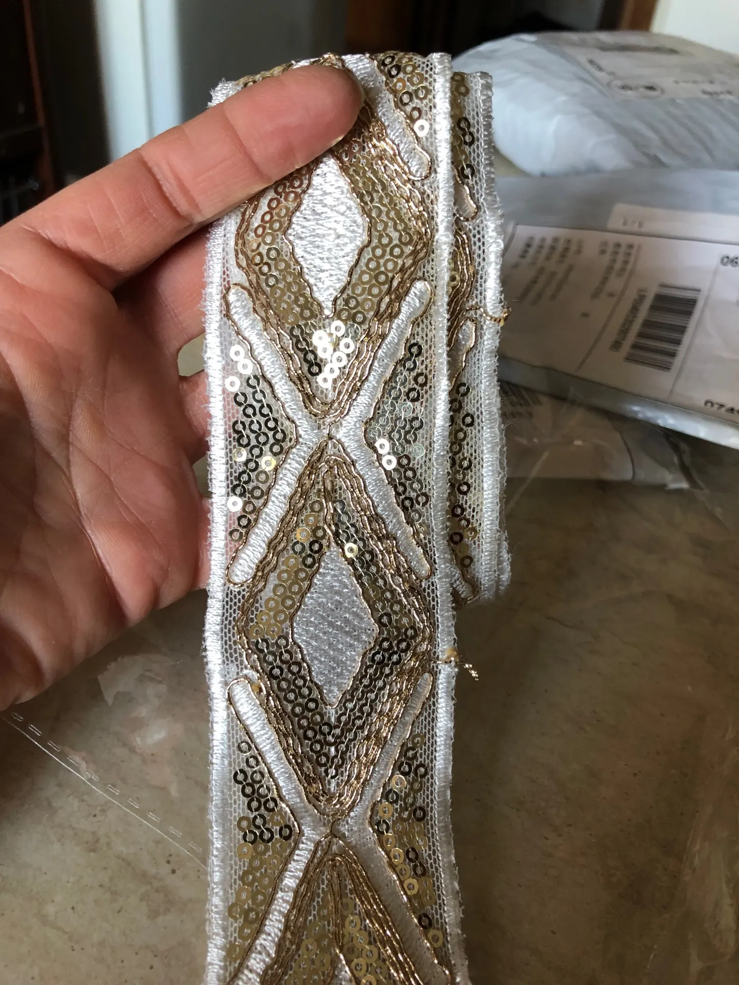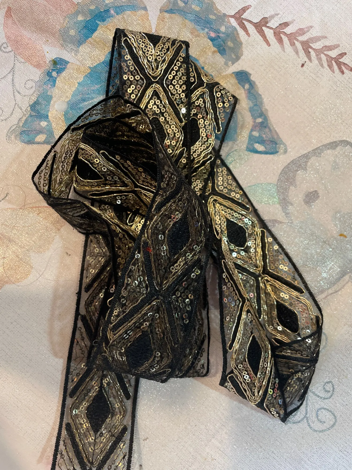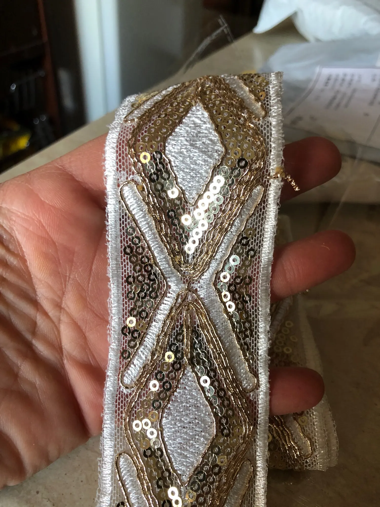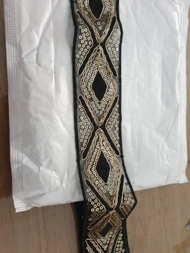 Ruban pour chaussures en fil d'or ethnique, 1 m, blanc, noir, 45mm, paillettes, pour robe, garniture en dentelle brodée, bricolage, accessoire de couture