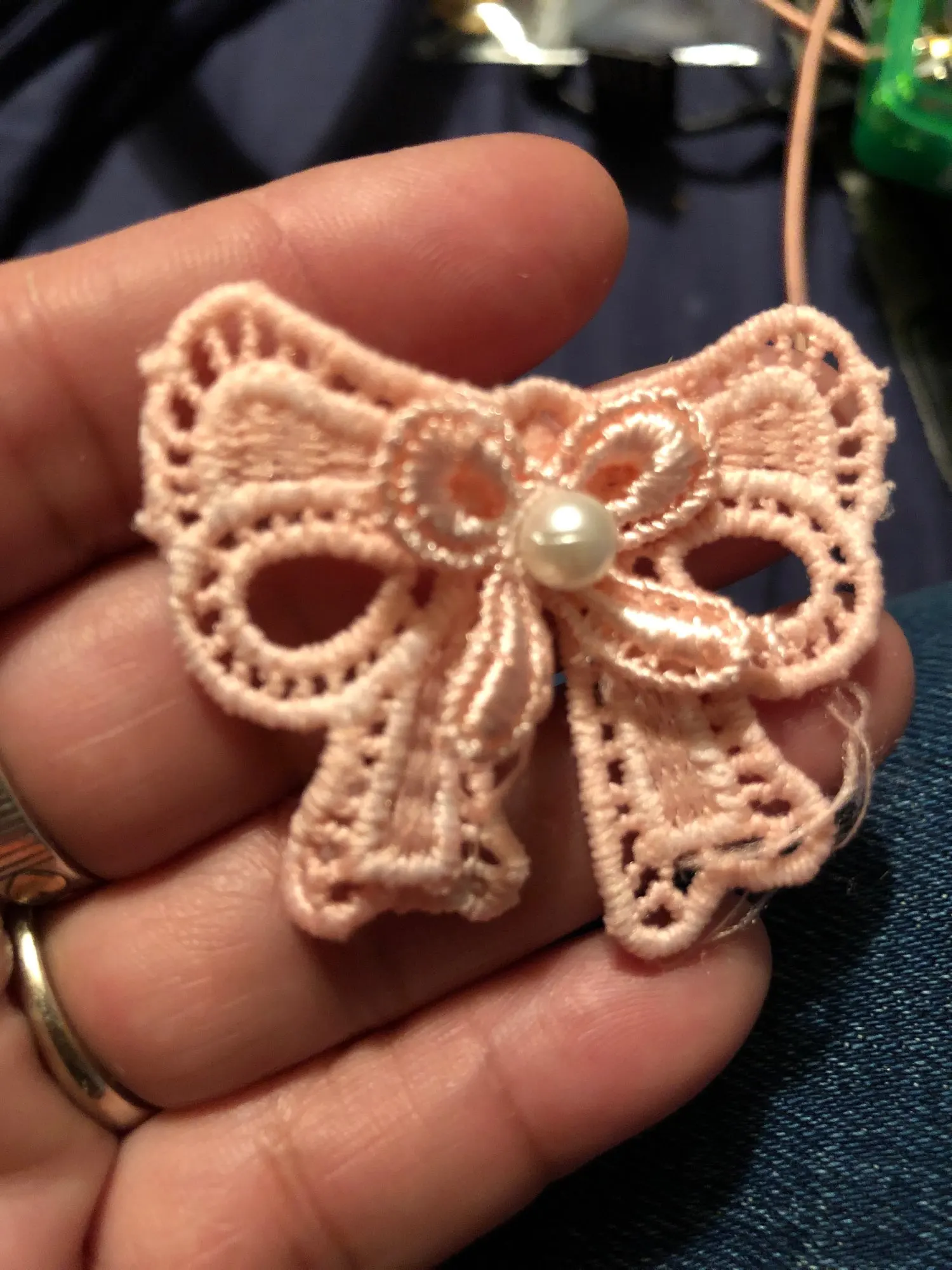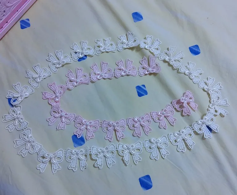 Ruban rose de dentelle brodé avec nœud papillon, 10x, perles tissu à bordure en dentelle, fournitures de couture faites à la main, artisanat pour décoration de vêtements, nouveauté