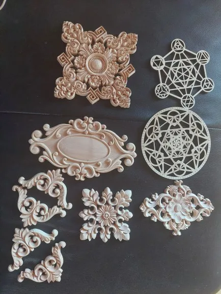 RUNBAZEF-Applique en bois de Style fleur décorative, pièces de fleur, passe-fond, garde-robe murale C. Flower, accessoires de décoration pour la maison