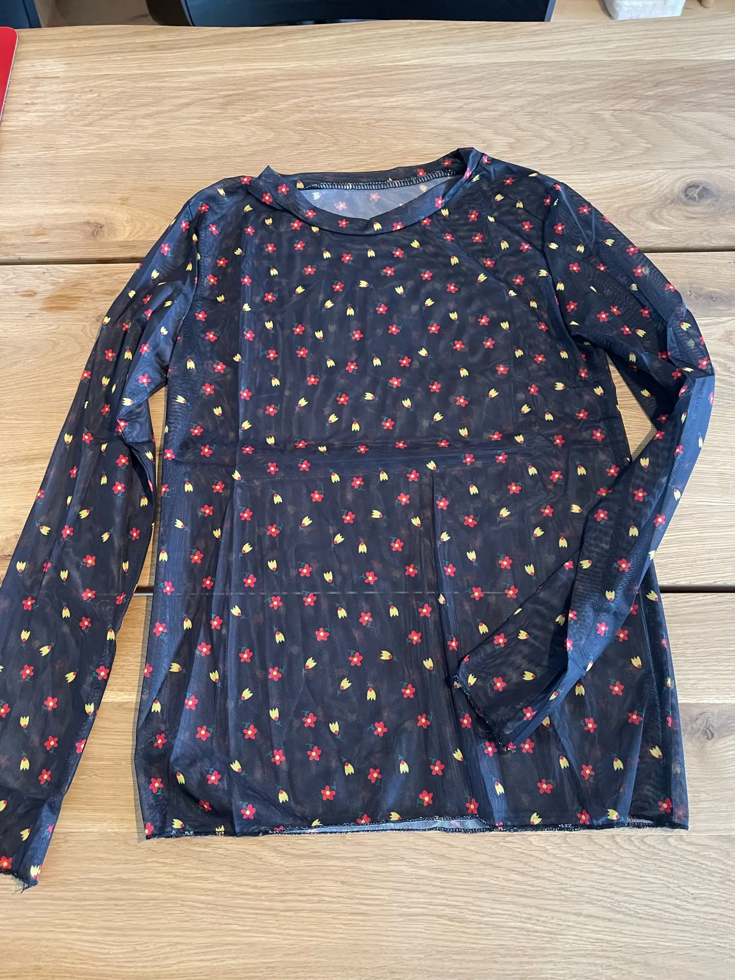 petit haut très mignon pour l'été ou alors en dessous d'un t-shirt, un pull,.. pour les autres saisons les motifs sont exactements pareils que sur la photo, pas déçue du tout, la couleur est très belle et le tissu très doux. ce haut est un peu transparent mais ce n'est pas étonnent vu la matière, taille bien et est extensible, se porte facilement, ne gratte pas et est très agréable à porté. De plus la livraison à été on ne peut plus que rapide, environ une semaine, alors que prévue pour plus tard, je suis satisfaite et vous recommande cet article :)