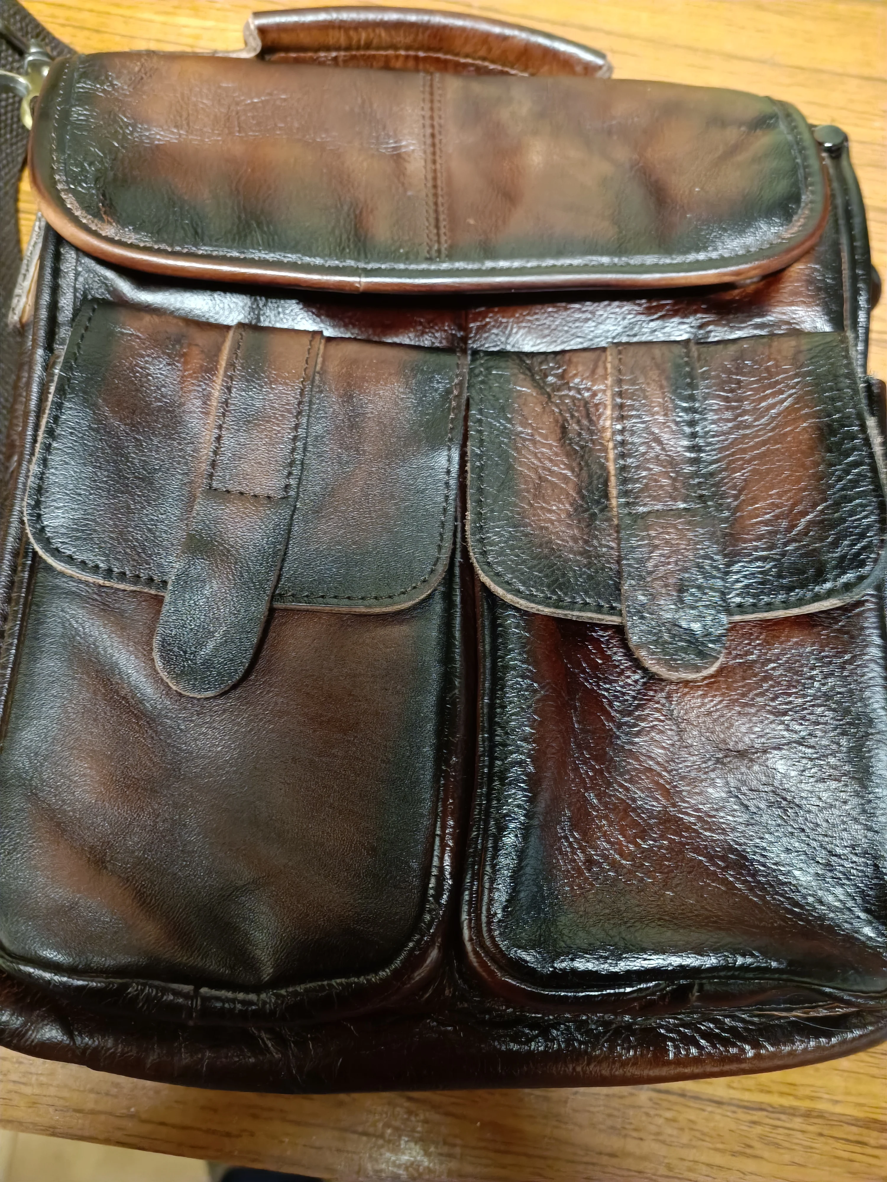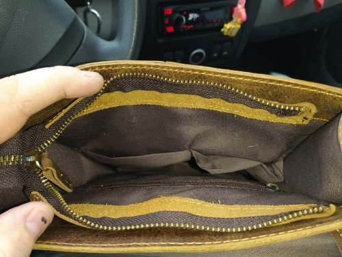 Nice soft leather. Size inside 25x20x5 cm. 3 weeks to Lithuania. Recommended seller.