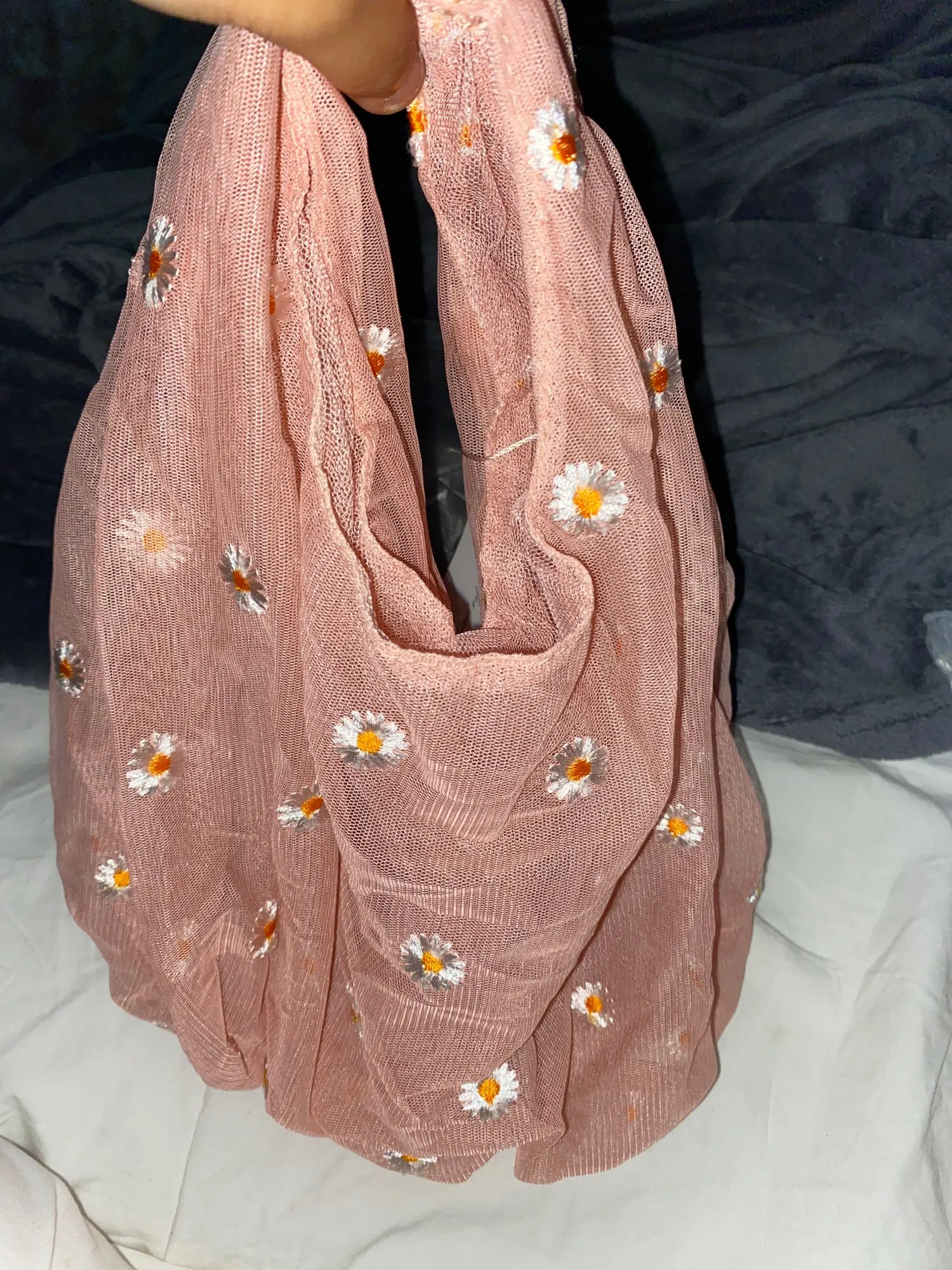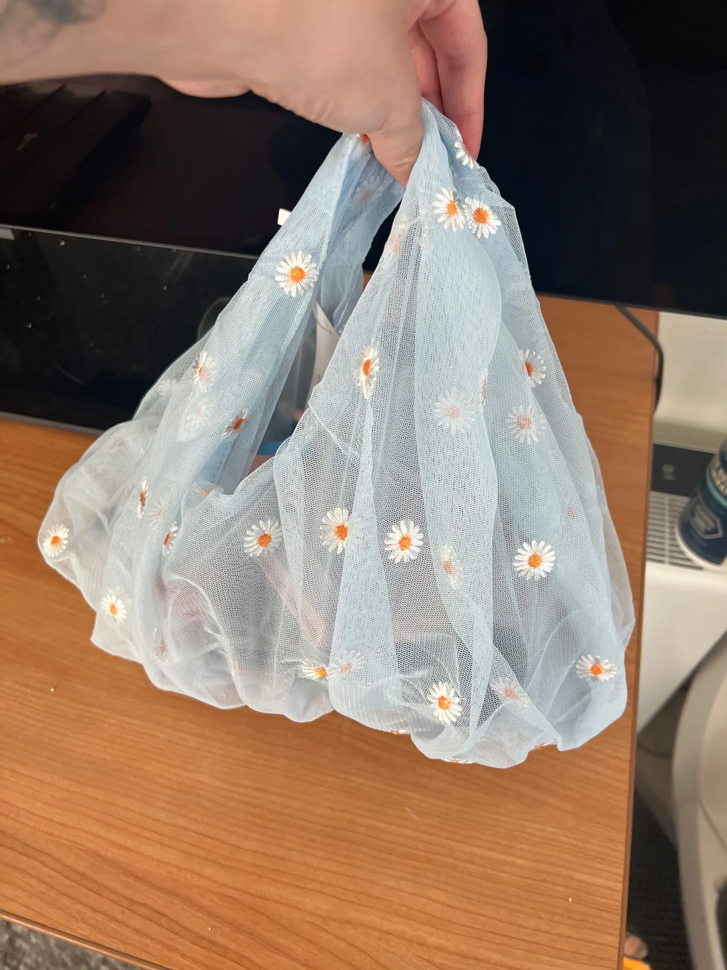 Sac à main en tissu Transparent pour femmes, petit fourre-tout en tissu brodé de marguerite, sac à fruits écologique de bonne qualité, Mini bourse de décoration pour filles