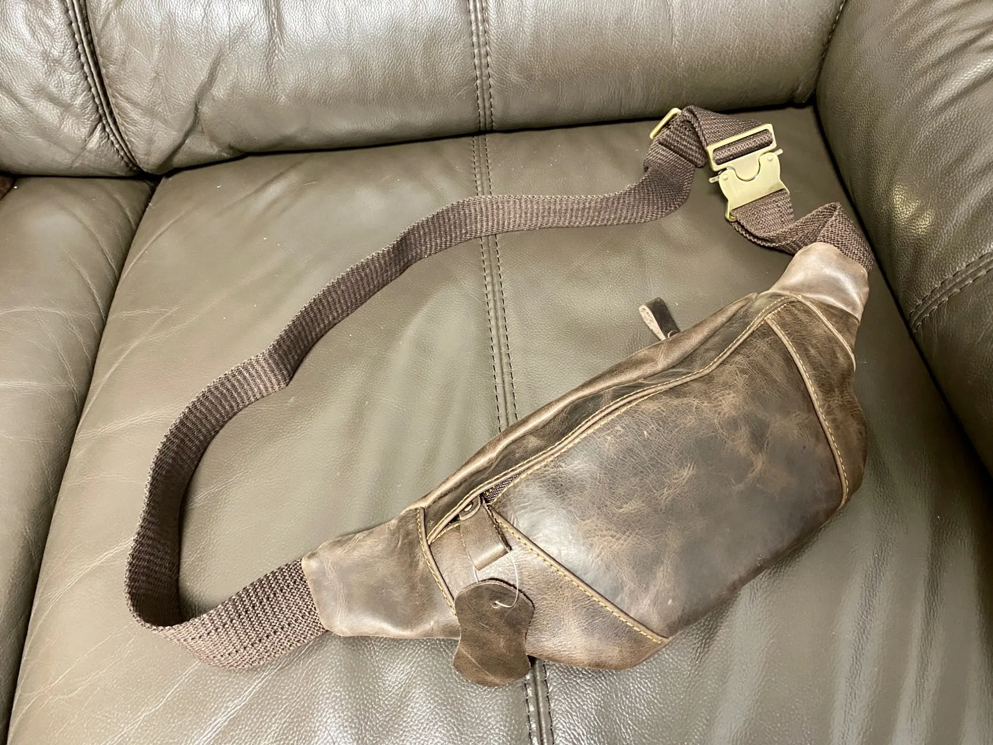 Sac banane en cuir véritable Crazy Horse pour hommes, sac de poitrine Vintage décontracté, petit sac de taille pour pochette de téléphone