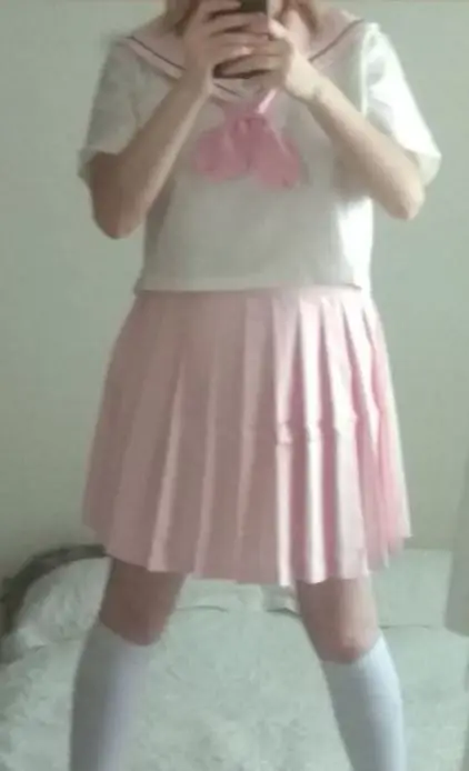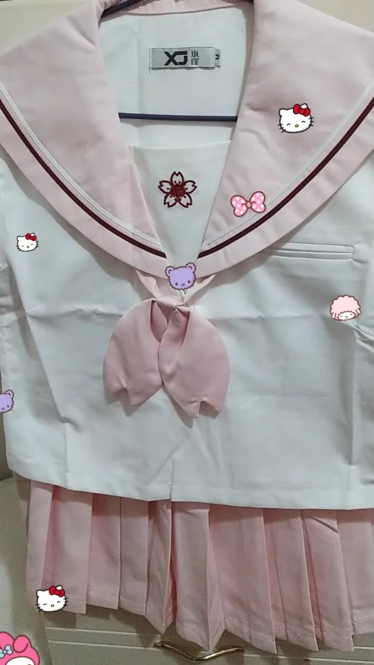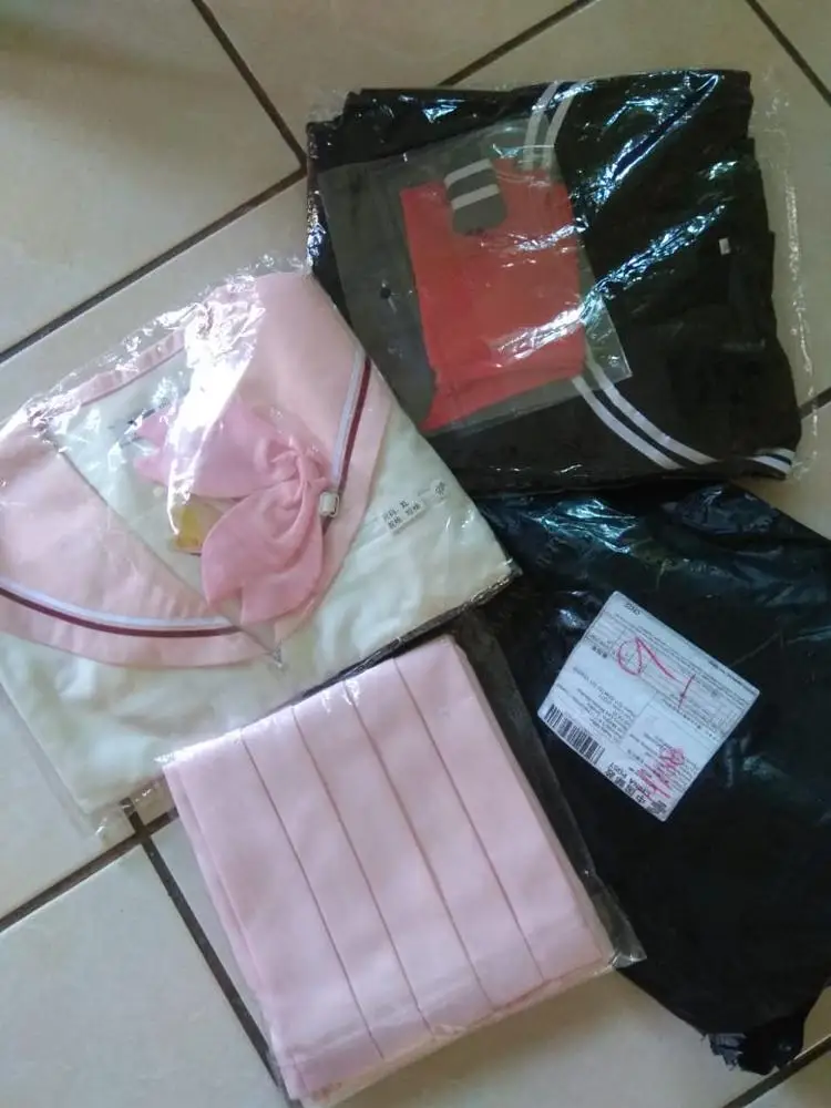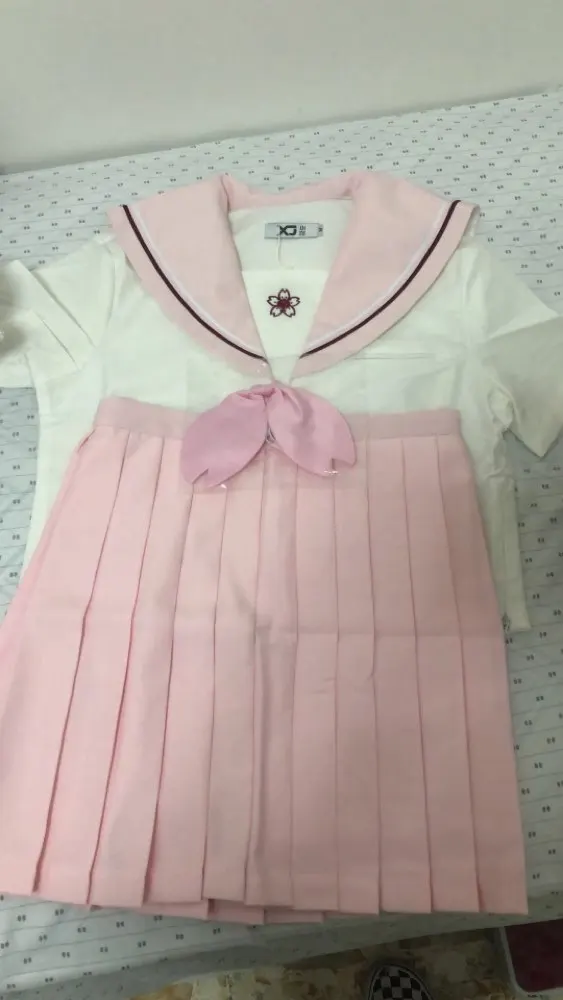 Conforme à l'image et la description, bien emballé, livraison plutôt rapide. L'uniforme est très mignon, je pense très bien aussi pour un cosplay... . Mais je pense que ça taille petit, en général je fais S ou M Français, j'ai pris du L et la jupe est un peu juste... mais il y a quand même possibilité de régler sa fermeture ^^. Satisfaite merci beaucoup :D