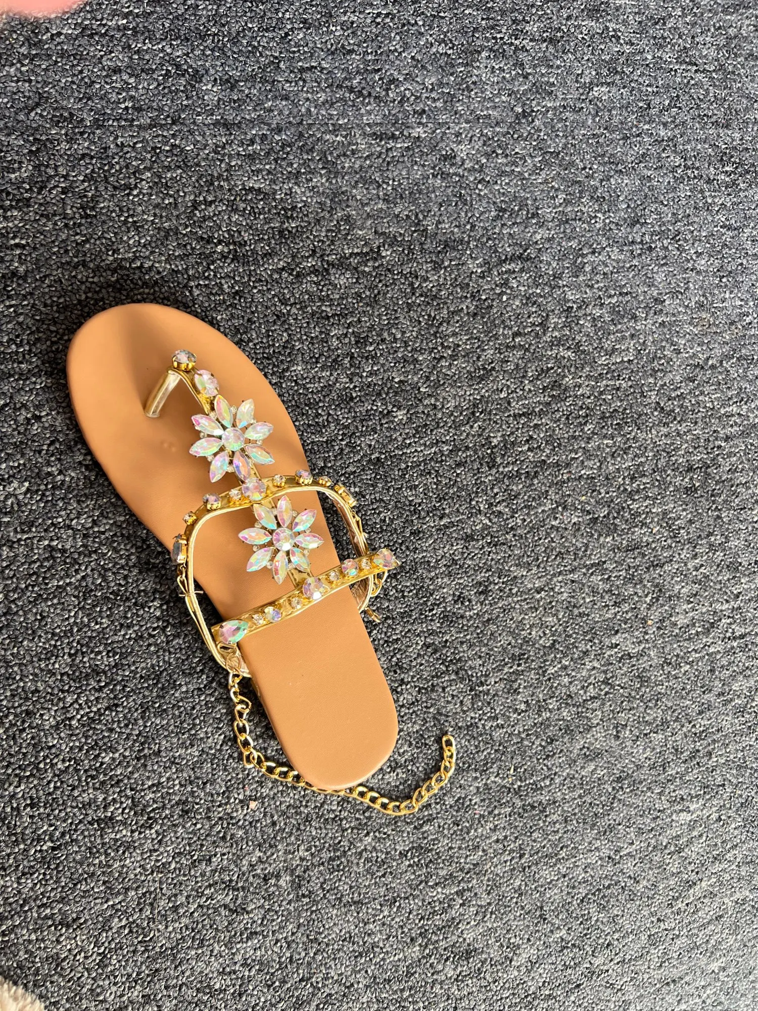 Sandales d'été à strass pour femmes, tongs de plage décontractées en cristal