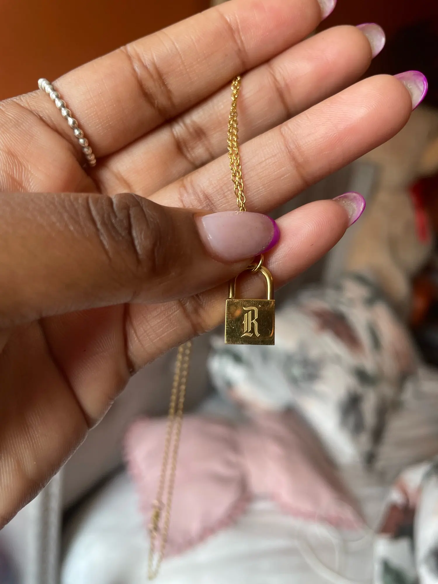 Sans ternir acier inoxydable o-chain vieux anglais plaqué or personnalisé serrure collier femmes anniversaire cadeau lettre collier