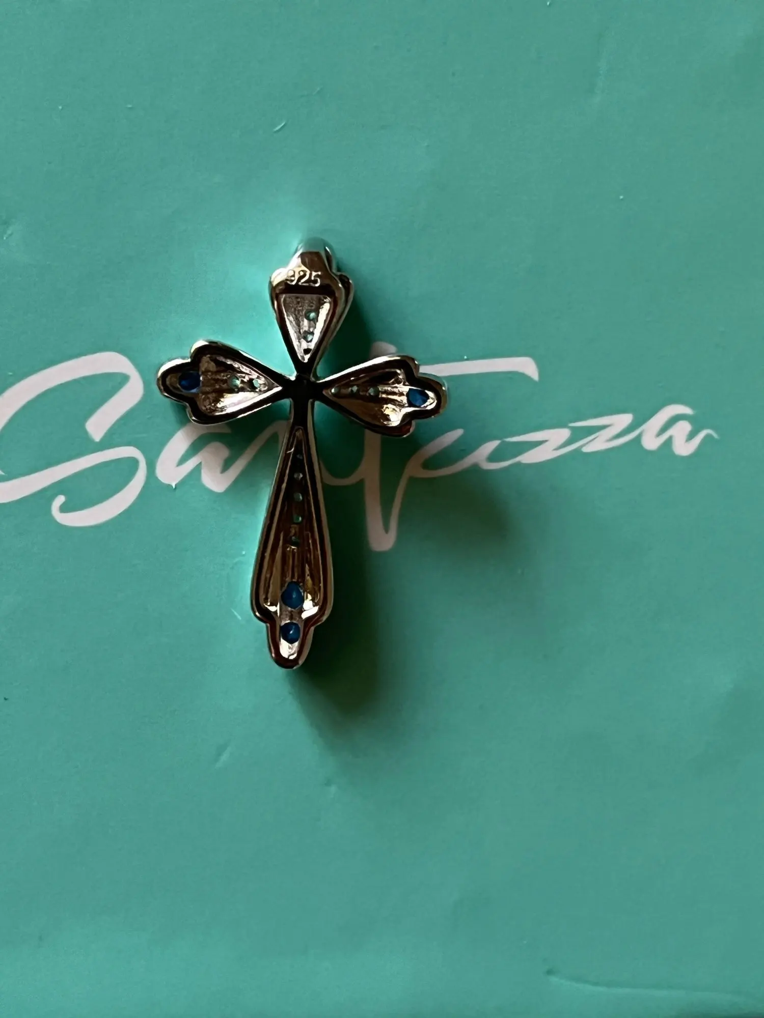 SANTUZZA – pendentif en argent Sterling 925 pour femmes, bijou élégant, croix bleue, adapté au collier délicat, à la mode