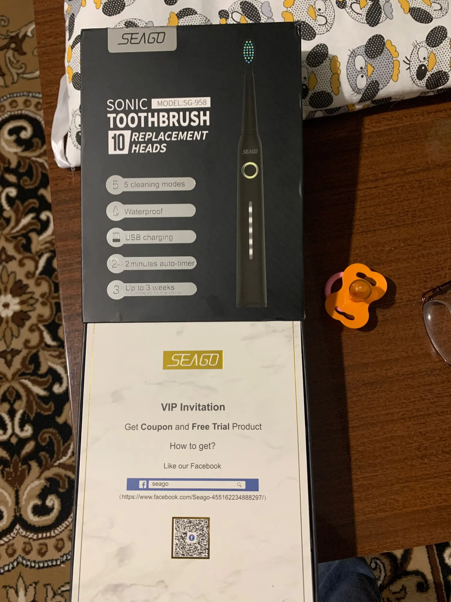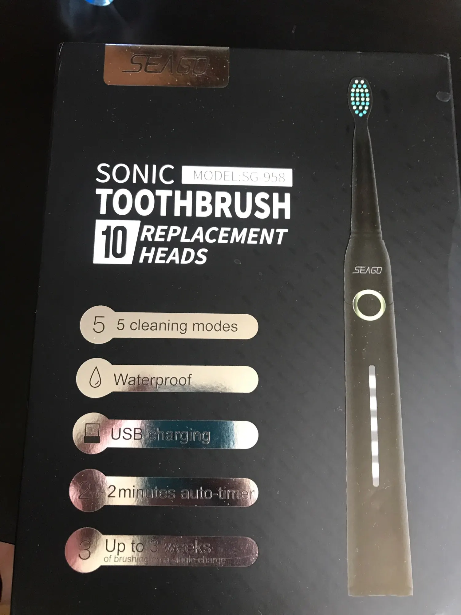 SEAGO – brosse à dents électrique sonique Rechargeable, boîte de voyage, gobelet pliable Portable, têtes de brosse de rechange ultrasonique