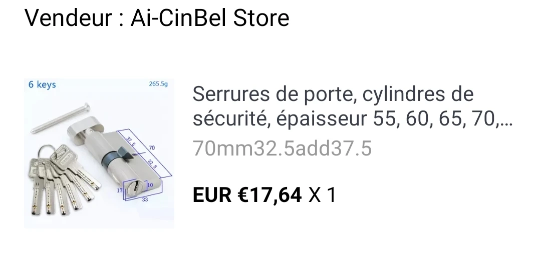j'ai pas reçu le bon produit et qui va pas du tous sur ma porte. j'ai reçu un 60 au lieu du 70 (32,5/37,5) que j'ai sur ma commande. j'ai essayer de contacter le vendeur sans succès. c'est pas sérieux a inviter absolument