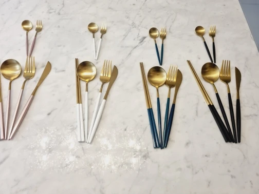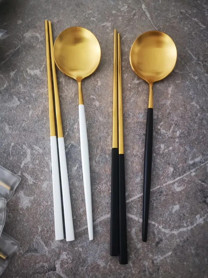Service de couverts en or blanc | Service de vaisselle en acier inoxydable, argenterie vaisselle cuillère fourchette couteau baguettes livraison directe