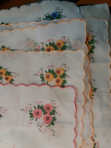 Serviette de soirée carrée Vintage en coton | Motif de fleurs pour femmes, carré mouchoir de dame, dentelle blanche, imprimée pour enfants, petite serviette hanky, couleurs aléatoires, 5 pièces/lot