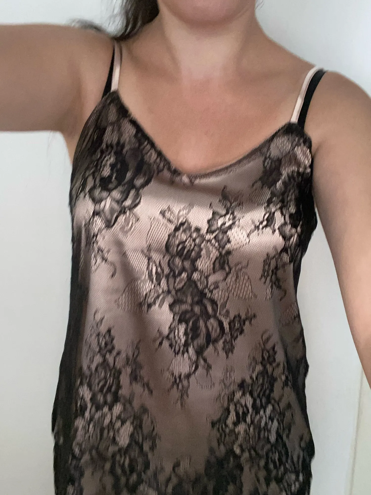 très belle camisole en soie, j'adore car elle assez courte, et très agréable a portée je recommande merci