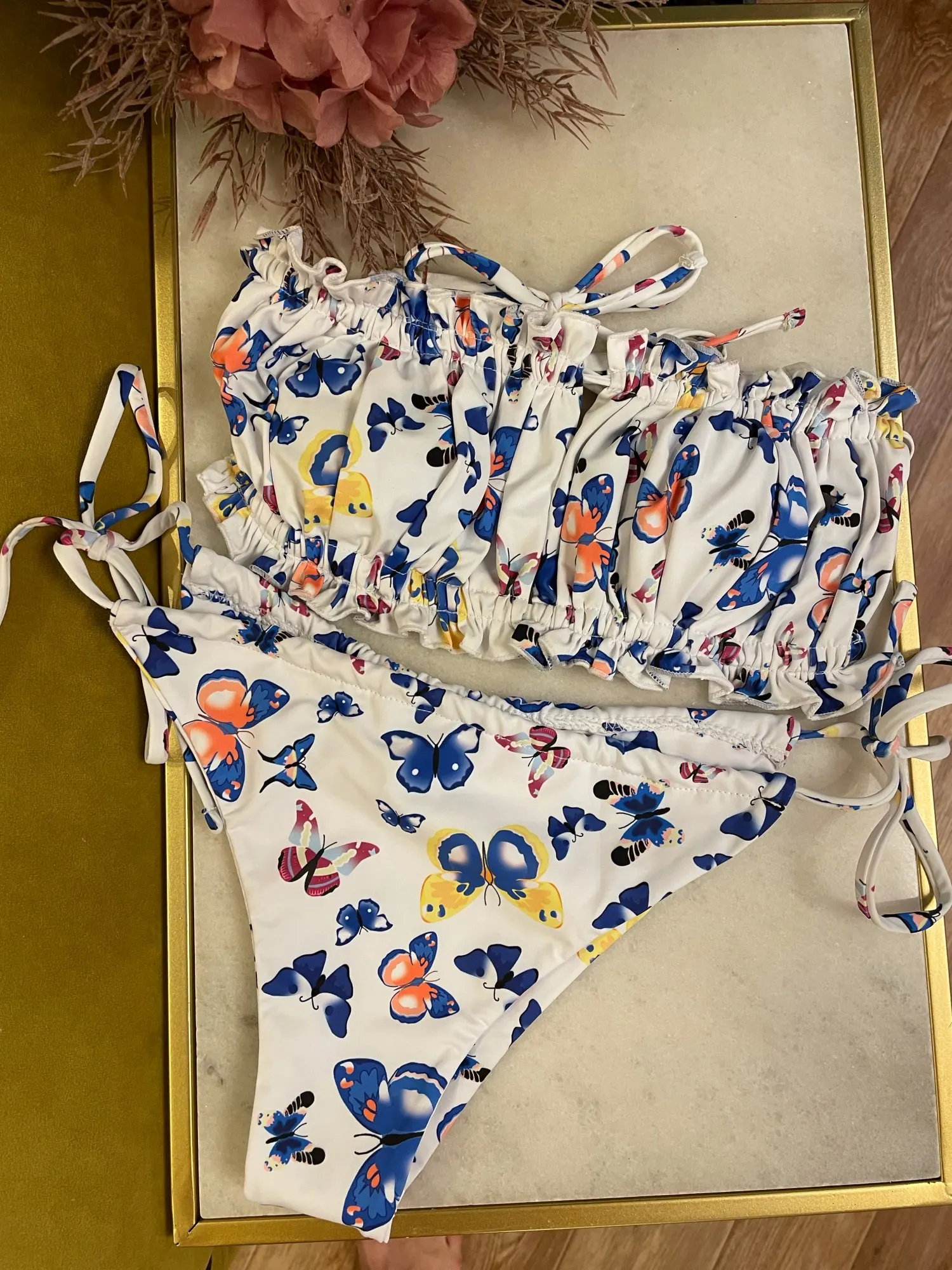 Sexy Imprimé Papillon Bandeau À Pois Bikini Maillot De Bain Maillot De Bain Pour Femme Femmes Deux pièces Ensemble Bikini baigneur Maillot V1242B