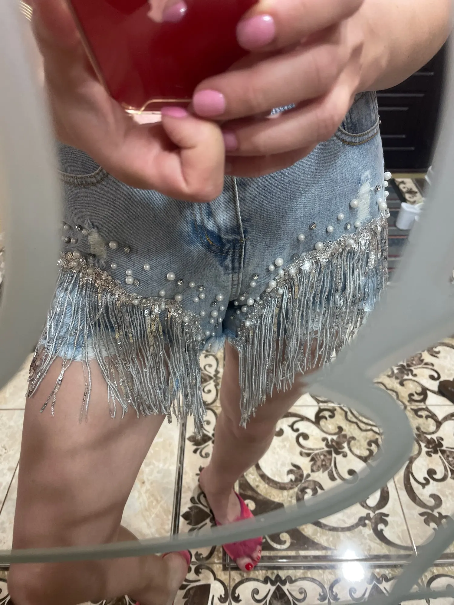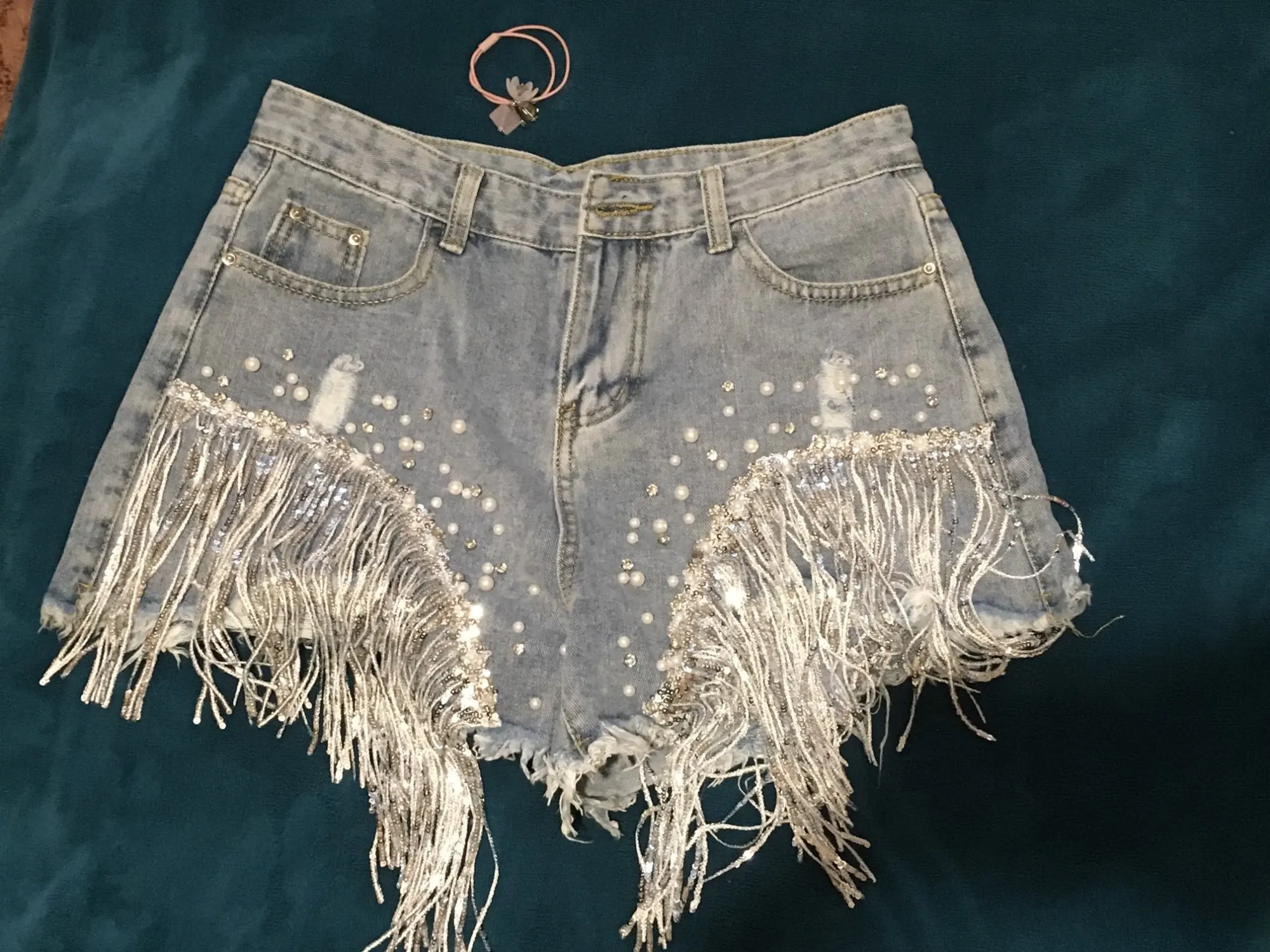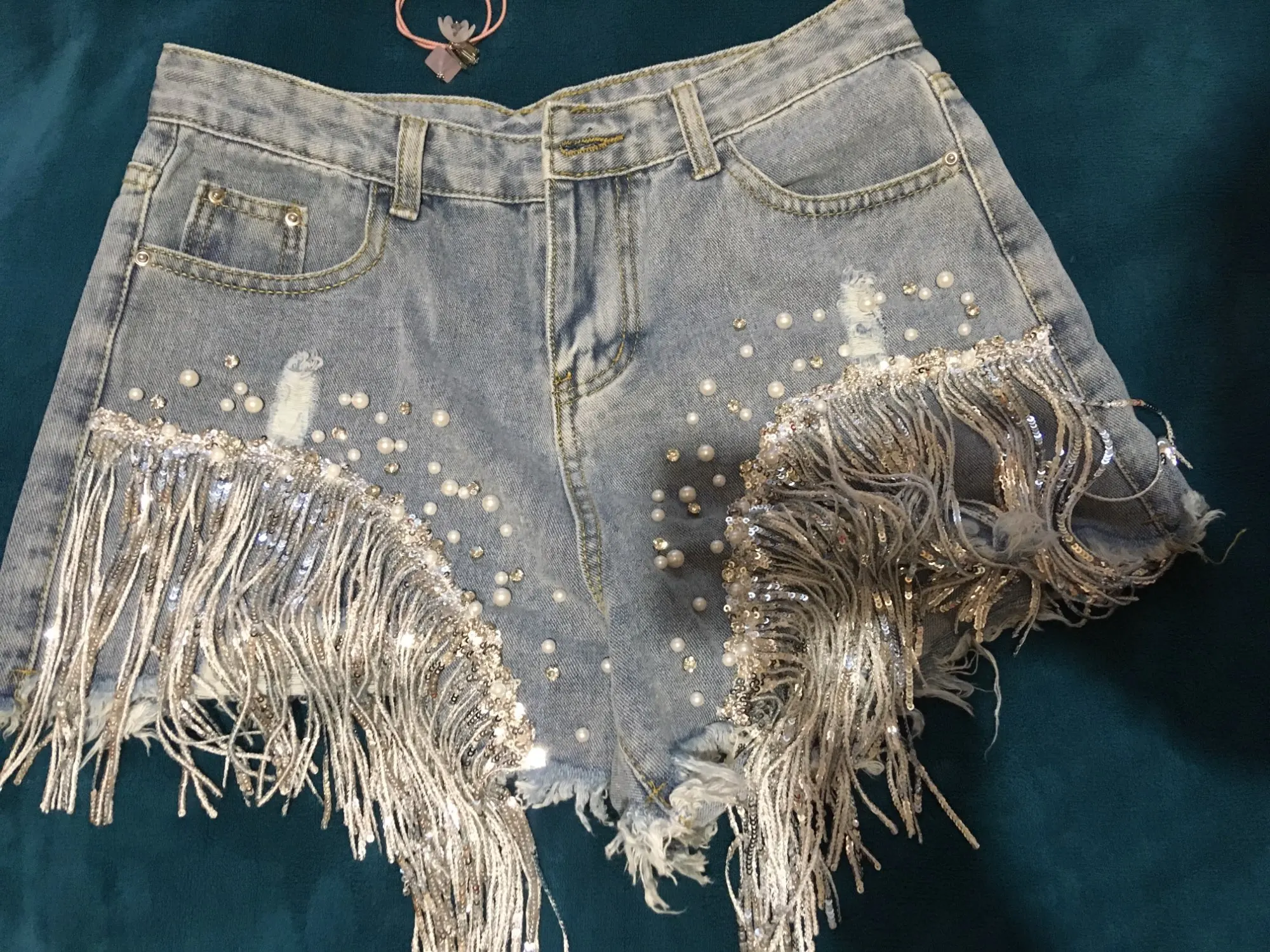 Short en jean déchiré à larges jambes pour femme, vêtement d'été, taille haute, amincissant, paillettes et perles, jambes larges, nouvelle collection 2022