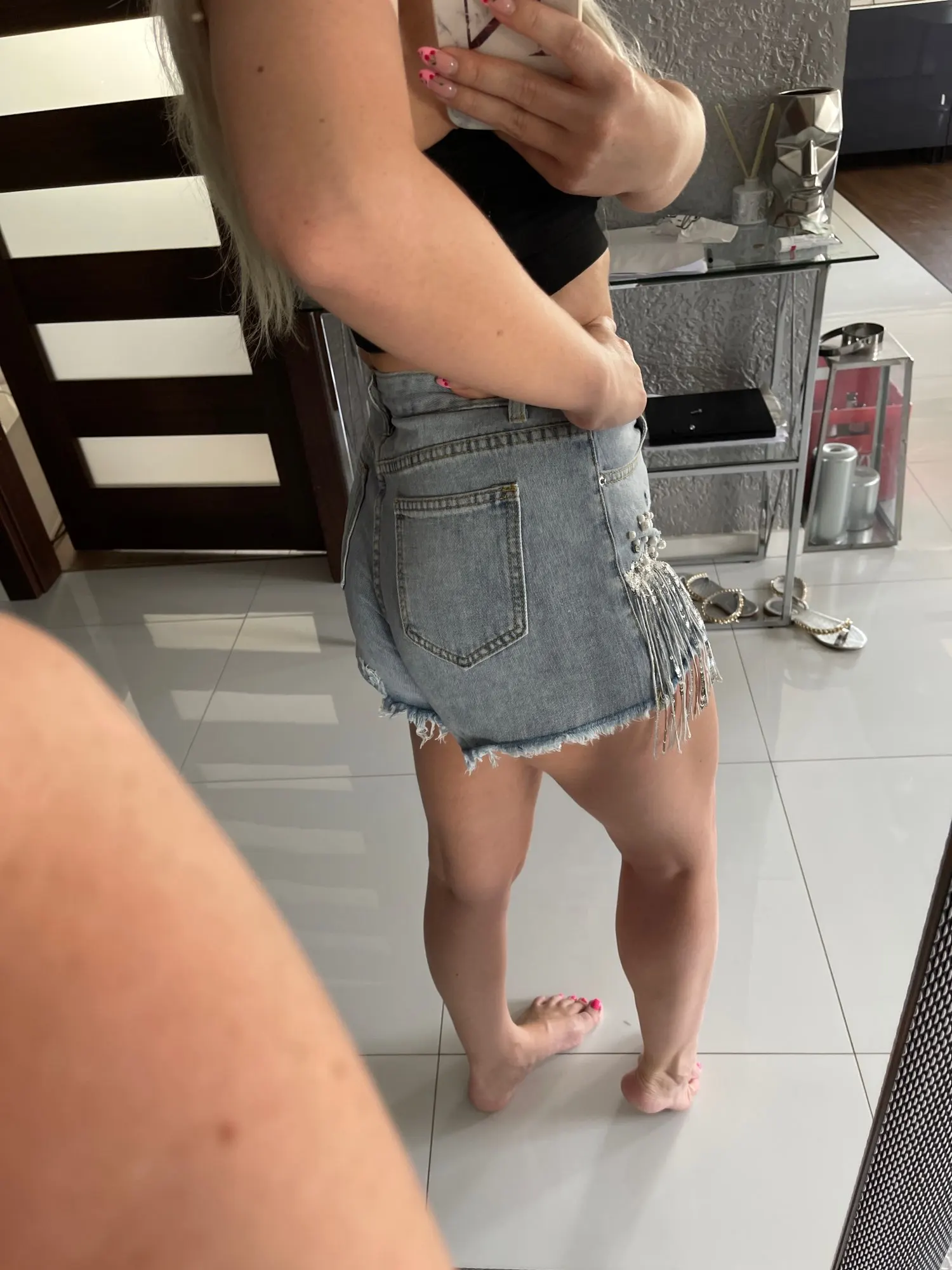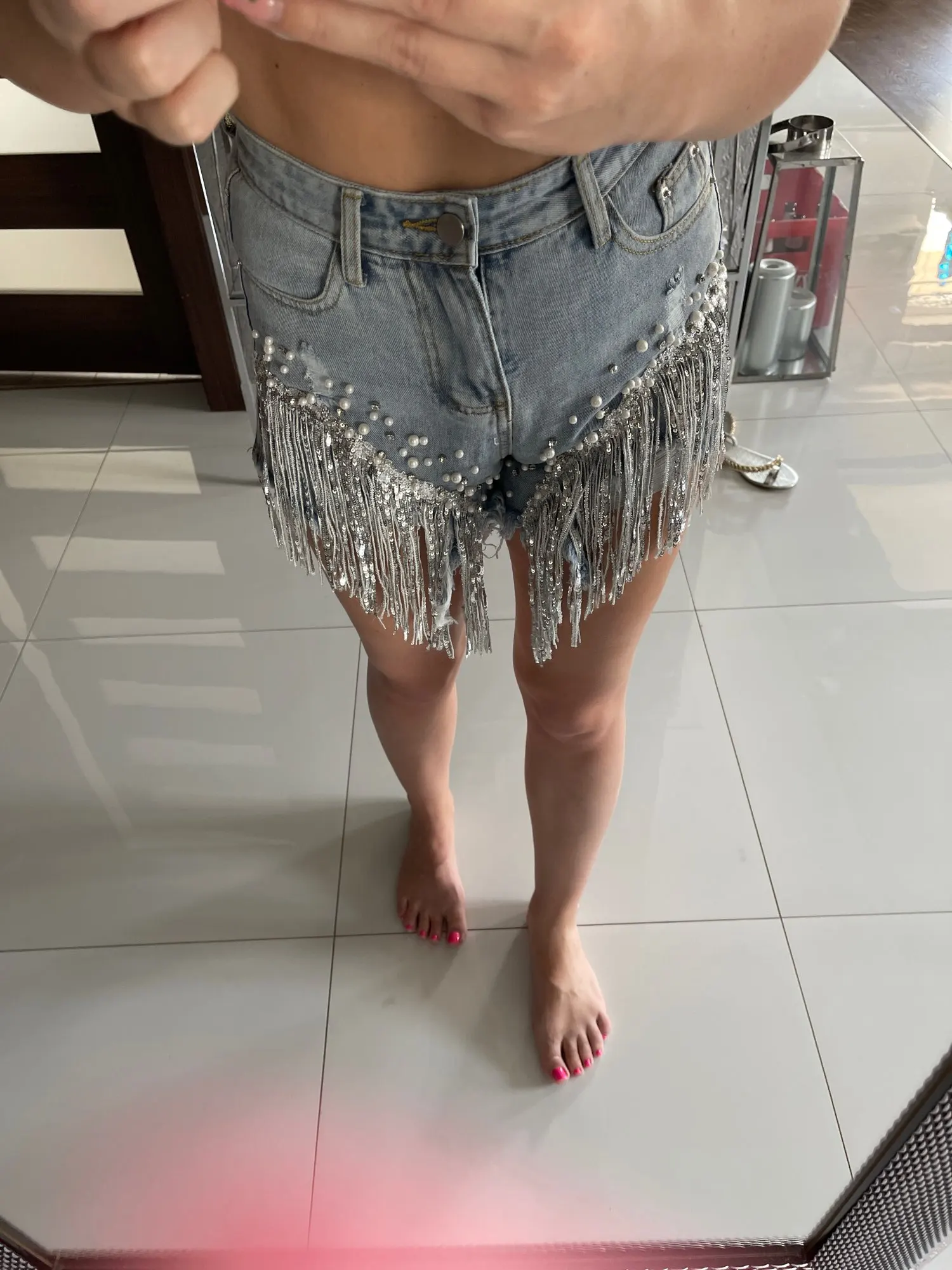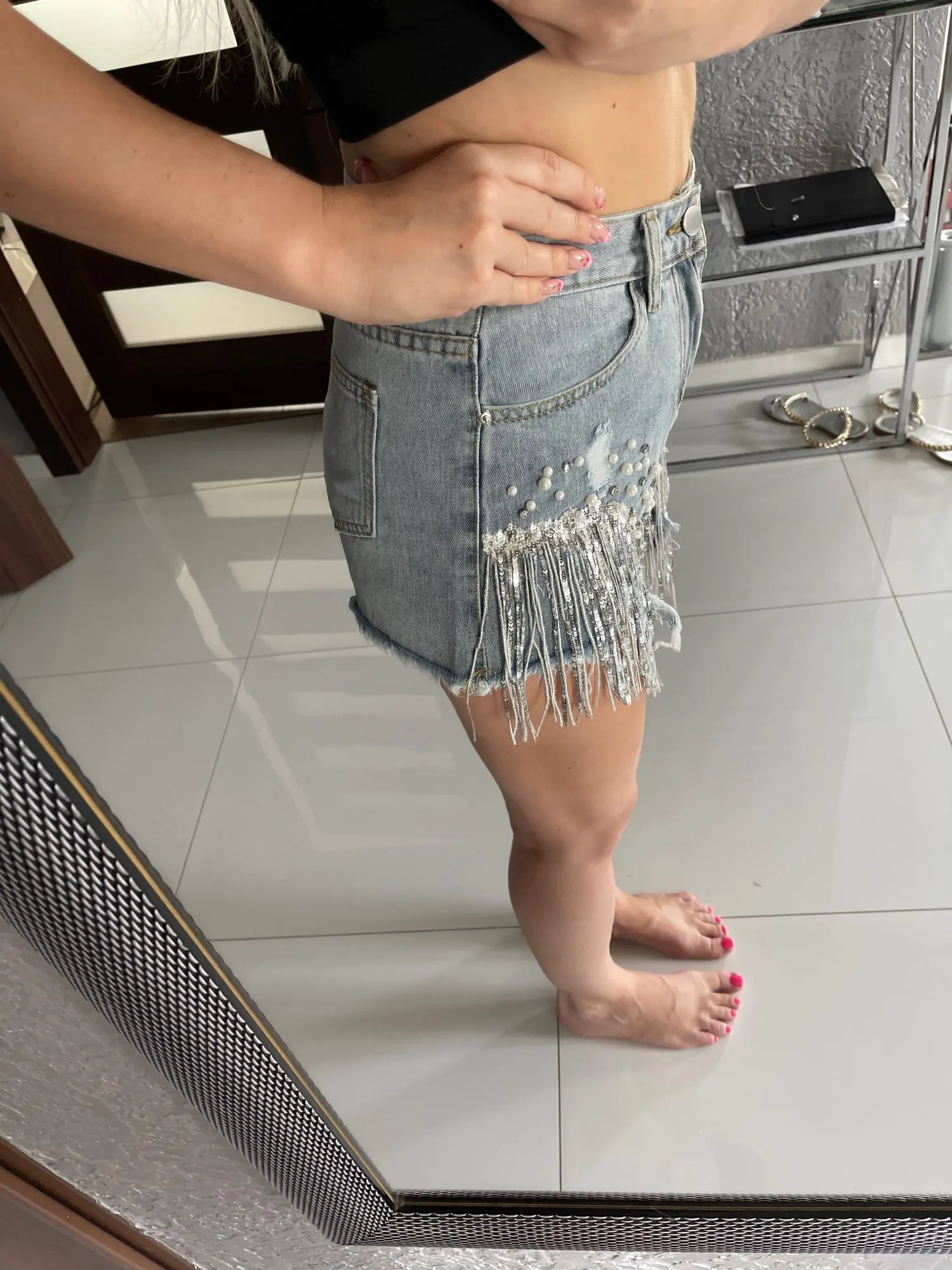 Short en jean déchiré à larges jambes pour femme, vêtement d'été, taille haute, amincissant, paillettes et perles, jambes larges, nouvelle collection 2022