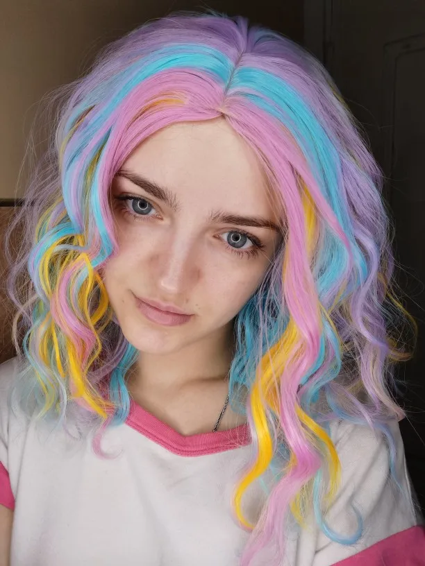Similler – perruque synthétique courte crépue et bouclée pour femmes, perruque Lolita Cosplay, colorée arc-en-ciel, Halloween, noir et blanc