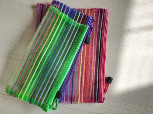 Simple Transparent arc-en-ciel couleur maille Document sac en Nylon papeterie sac trousse à fermeture éclair bureau étudiant fournitures scolaires