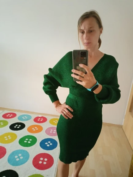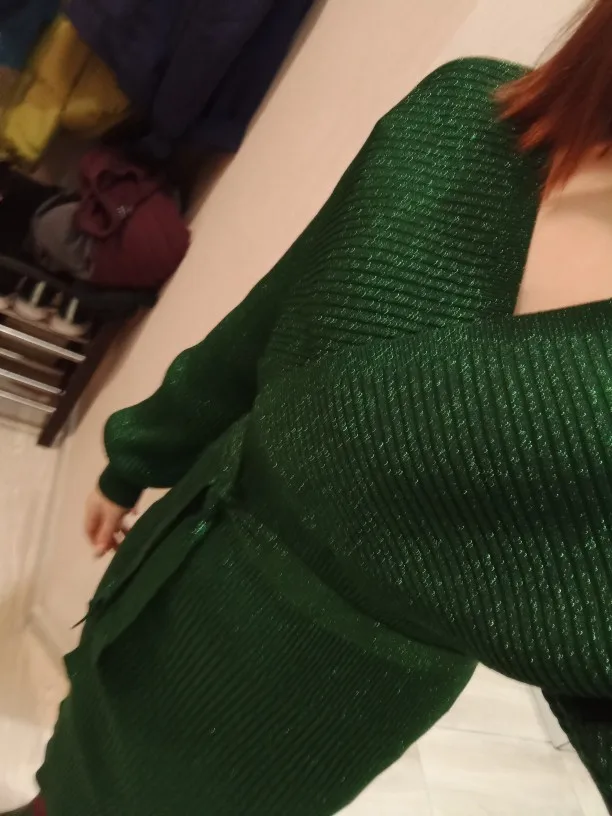SINGRAIN femmes brillant robe tricotée Sexy col en V manches bouffantes gaine élastique robe à tricoter automne solide nœud ceintures robe crayon